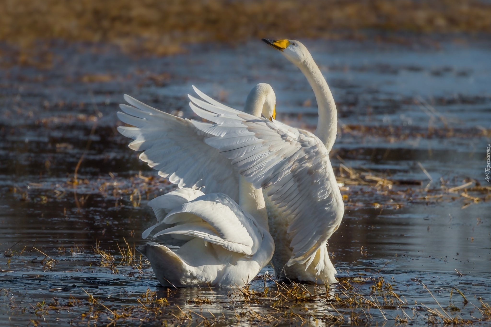 Edytor tapety: Powitanie dwóch białych łabędzi w wodzie
