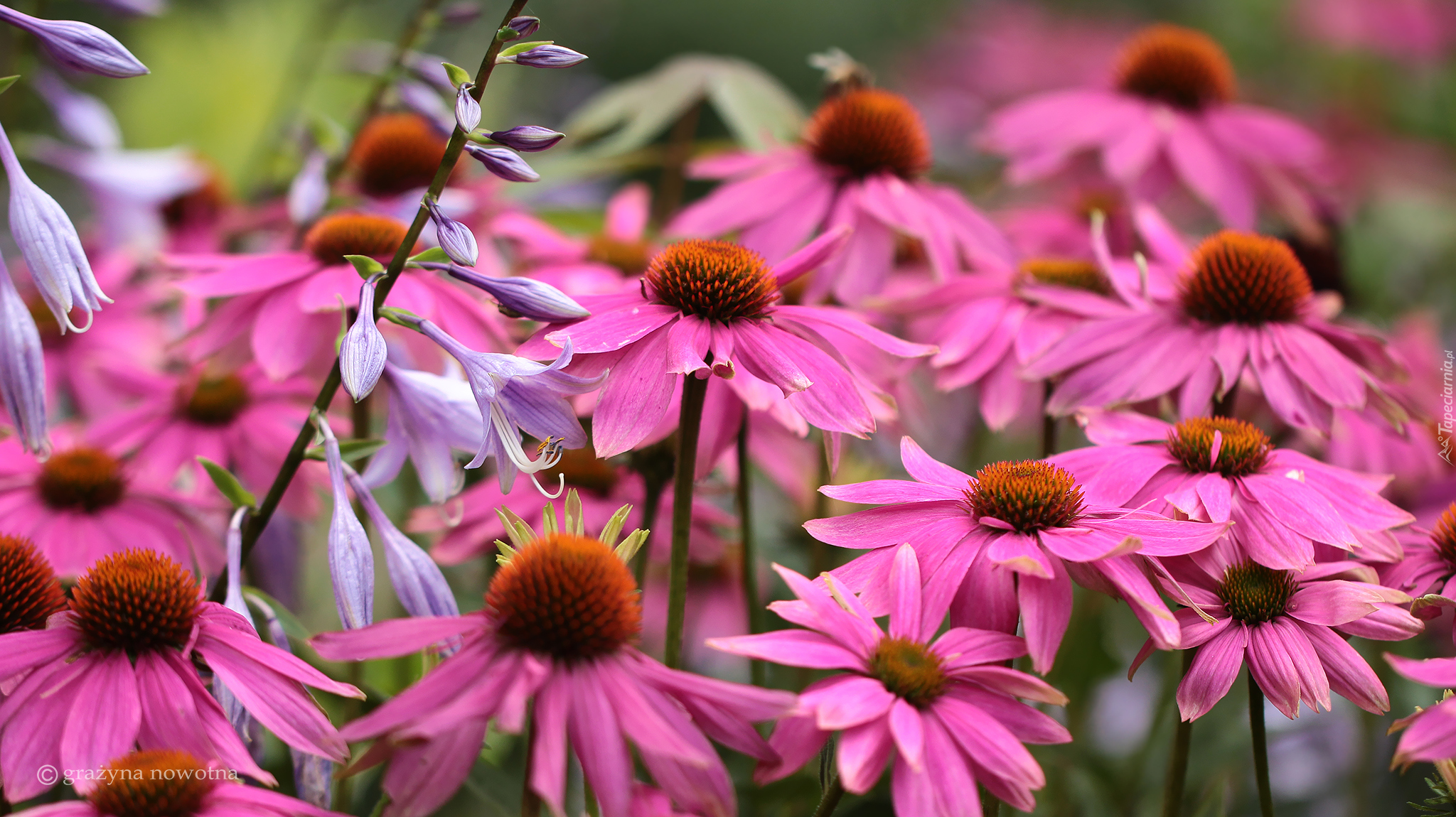 Edytor tapety: Funkia pomiędzy kwiatami jeżówki