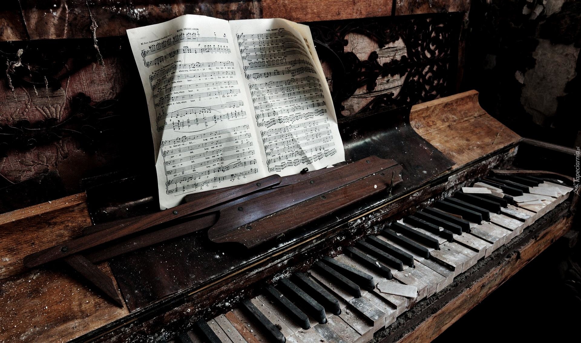 Edytor tapety: Nuty na zniszczonym fortepianie
