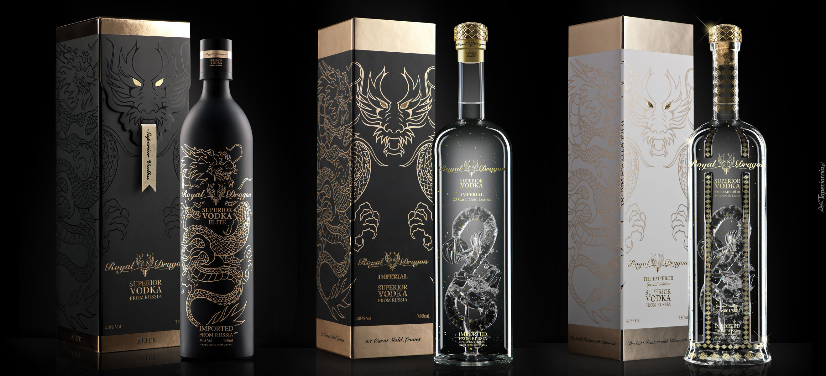 Edytor tapety: Trzy butelki rosyjskiej wódki Royal Dragon
