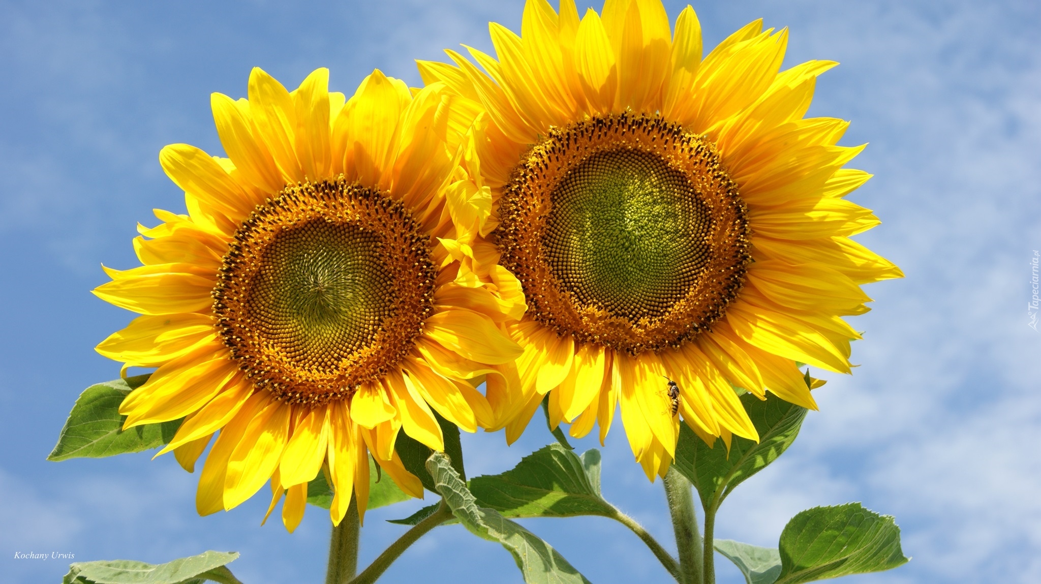 Edytor tapety: Dwa słoneczniki na tle słonecznego nieba