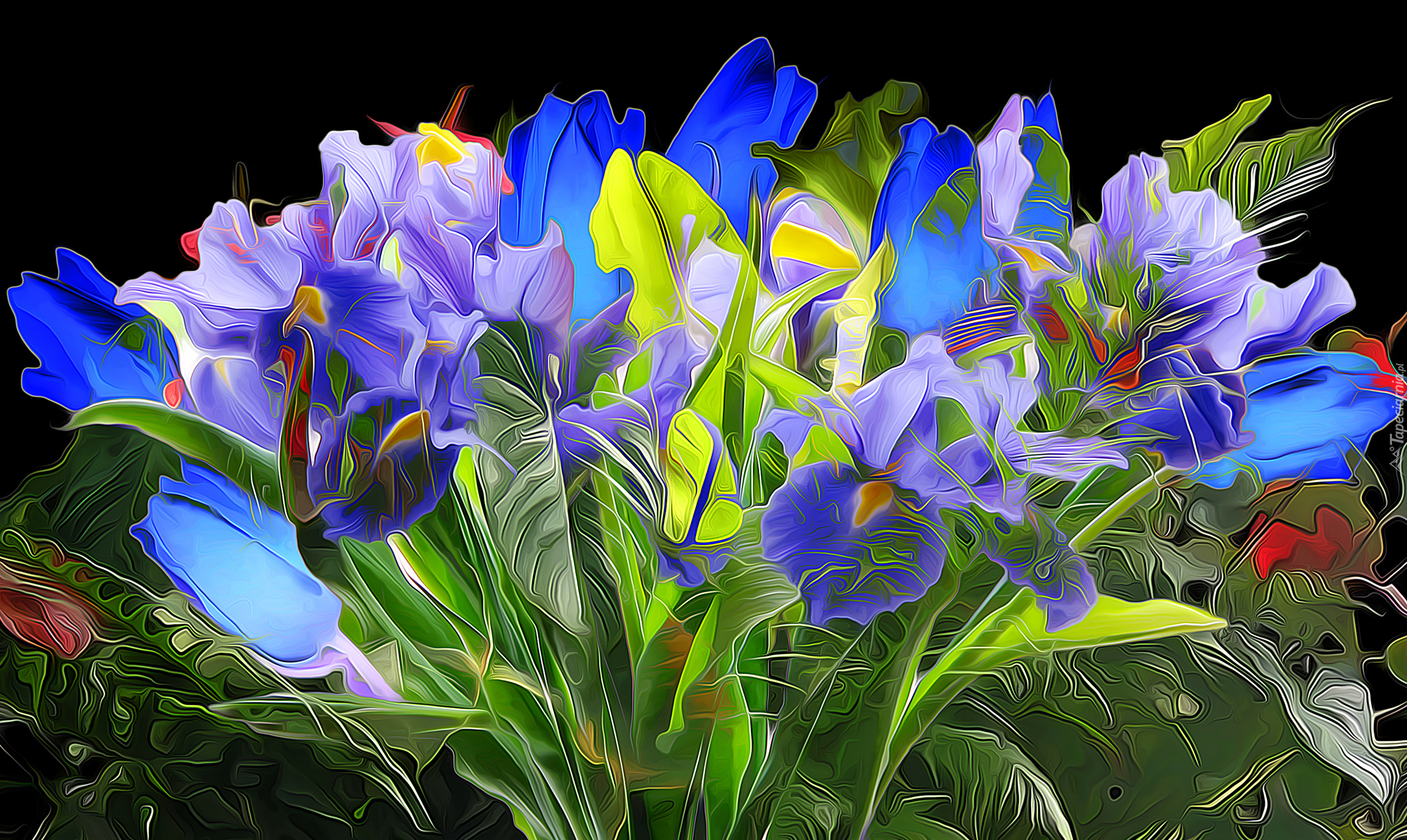 Edytor tapety: Bukiet kwiatów w grafice fractalius