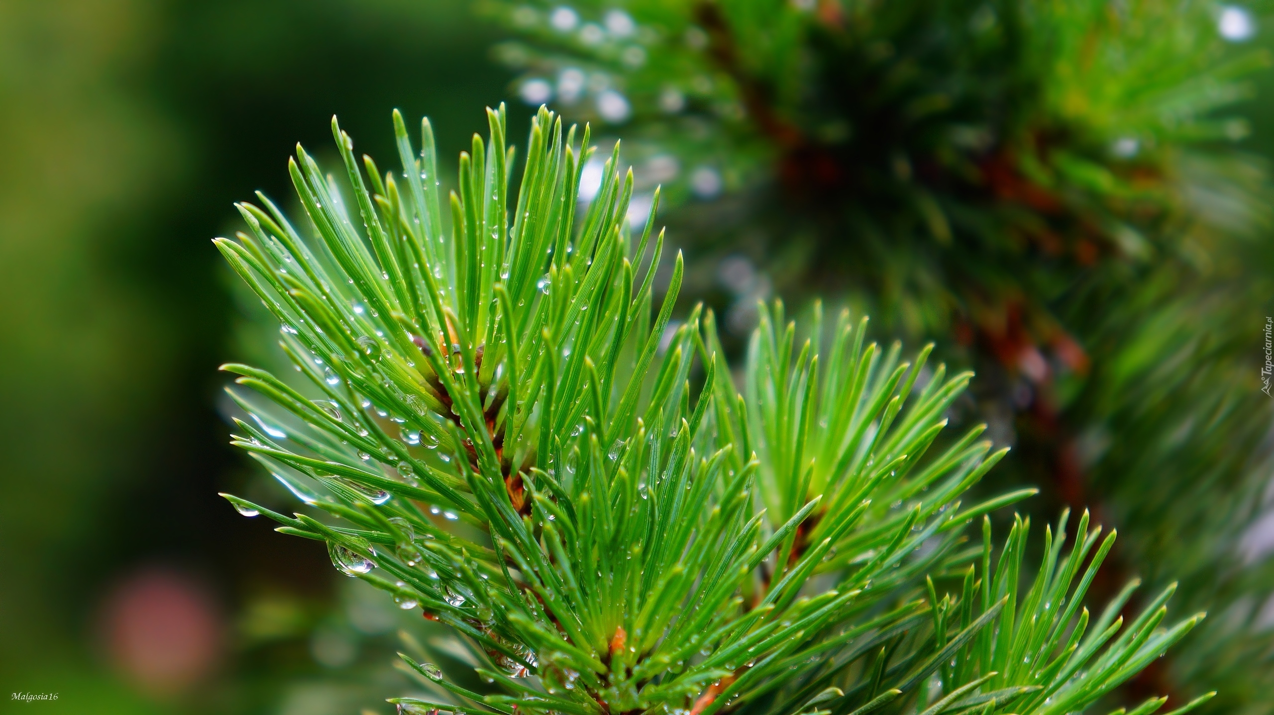 Edytor tapety: Sosnowe gałązki w kroplach rosy
