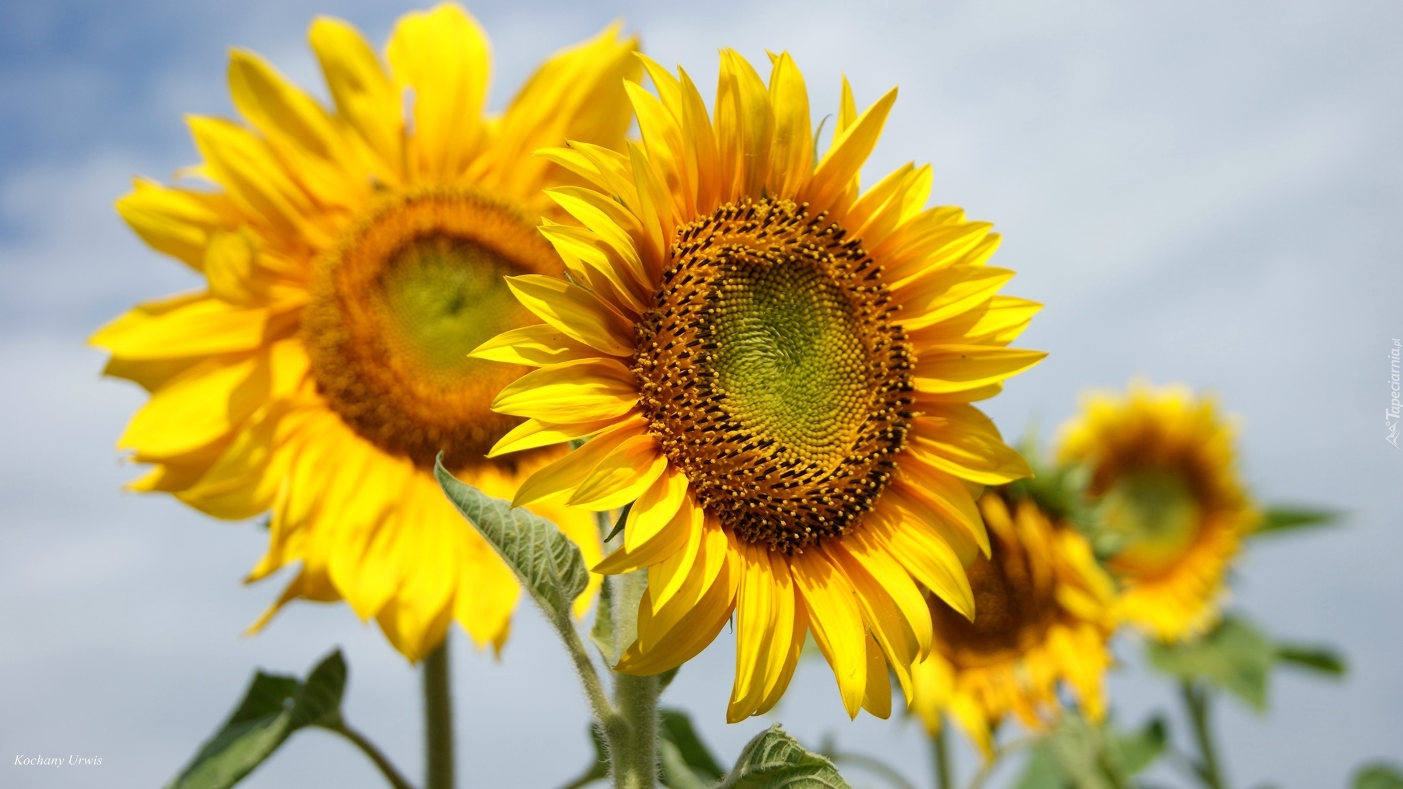 Edytor tapety: Słoneczniki na rozmytym tle