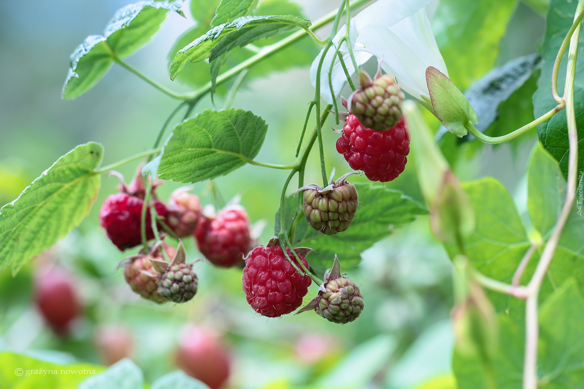 Edytor tapety: Dojrzewające maliny na gałązce