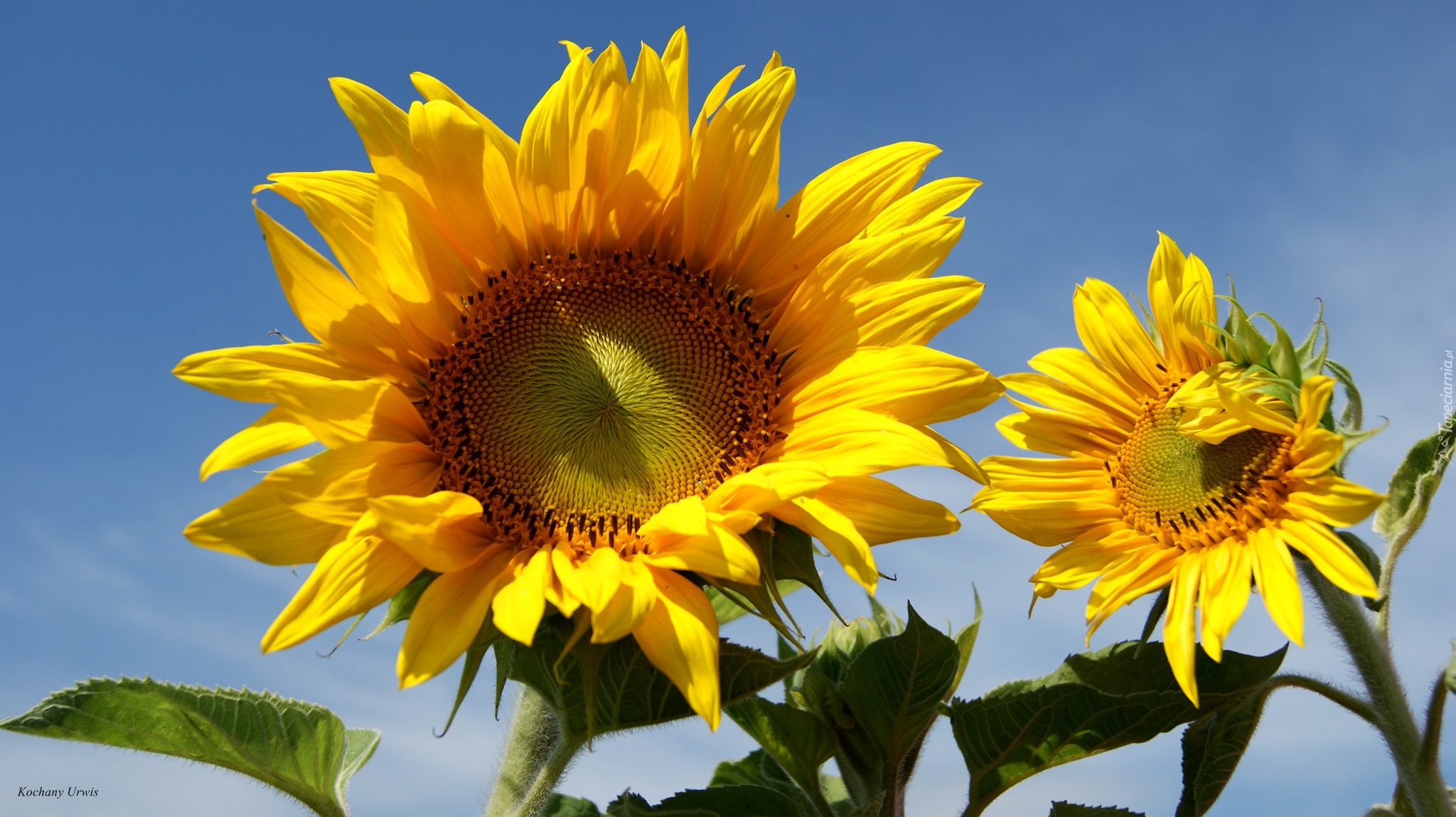 Edytor tapety: Dwa kwitnące słoneczniki w słońcu