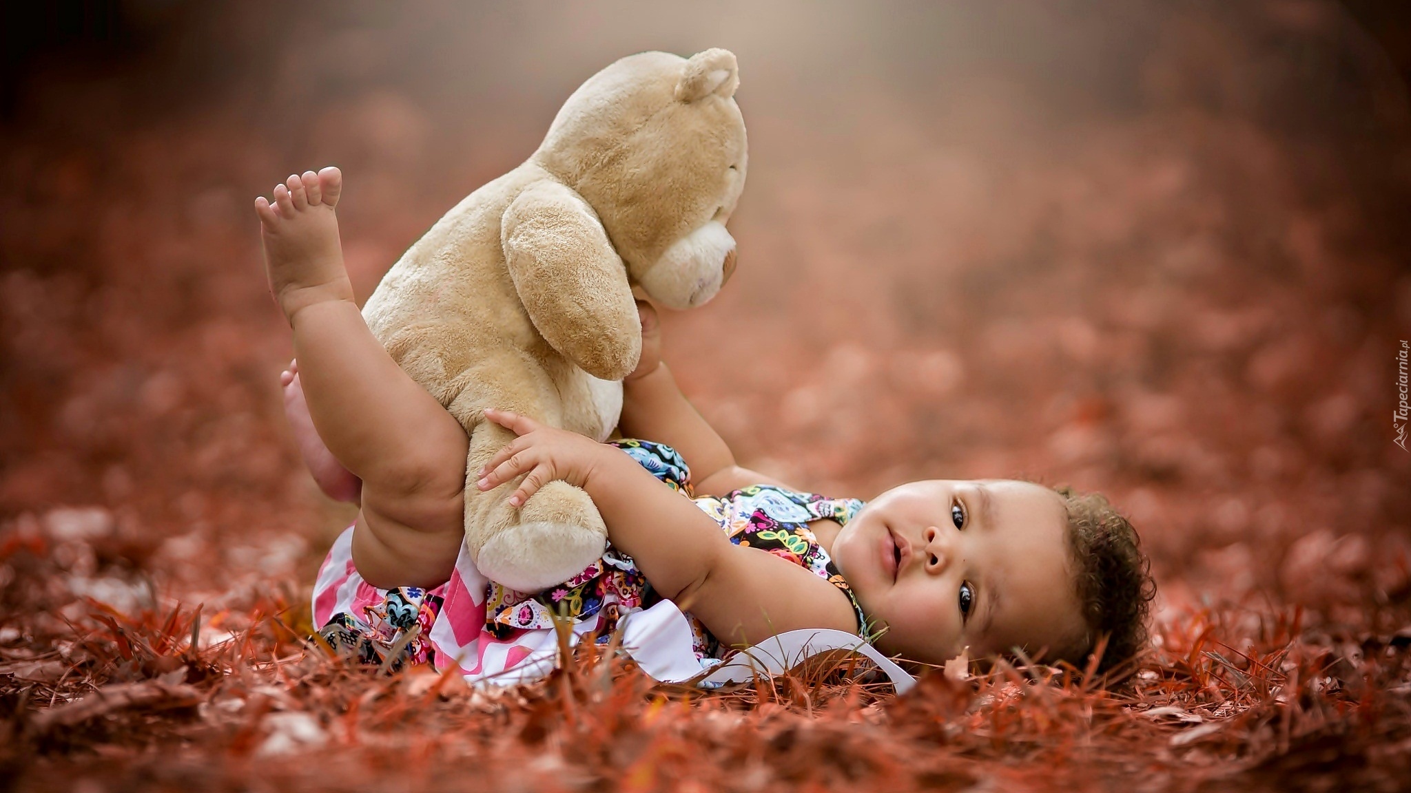 Edytor tapety: Małe dziecko bawi się pluszowym misiem