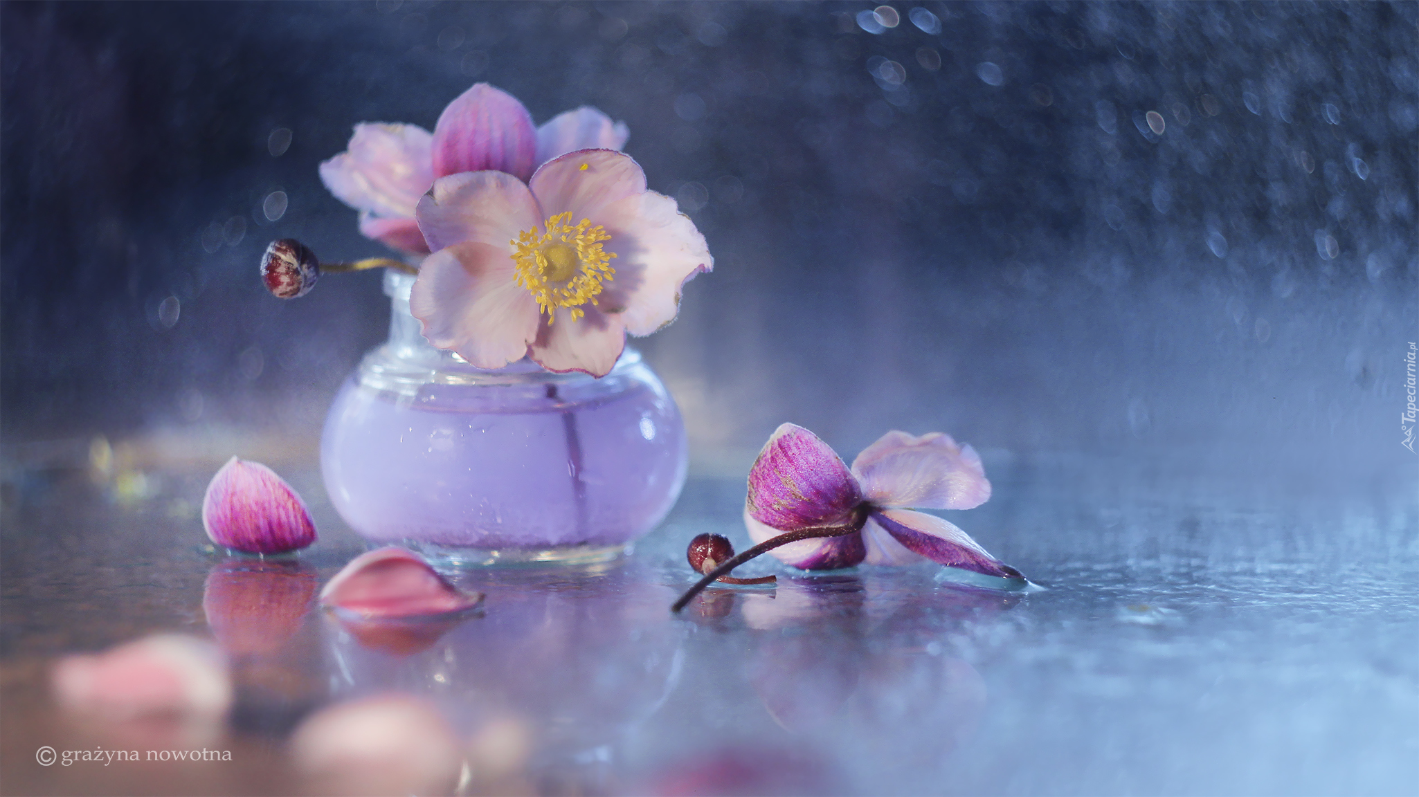 Edytor tapety: Zawilce japońskie w szklanym wazoniku