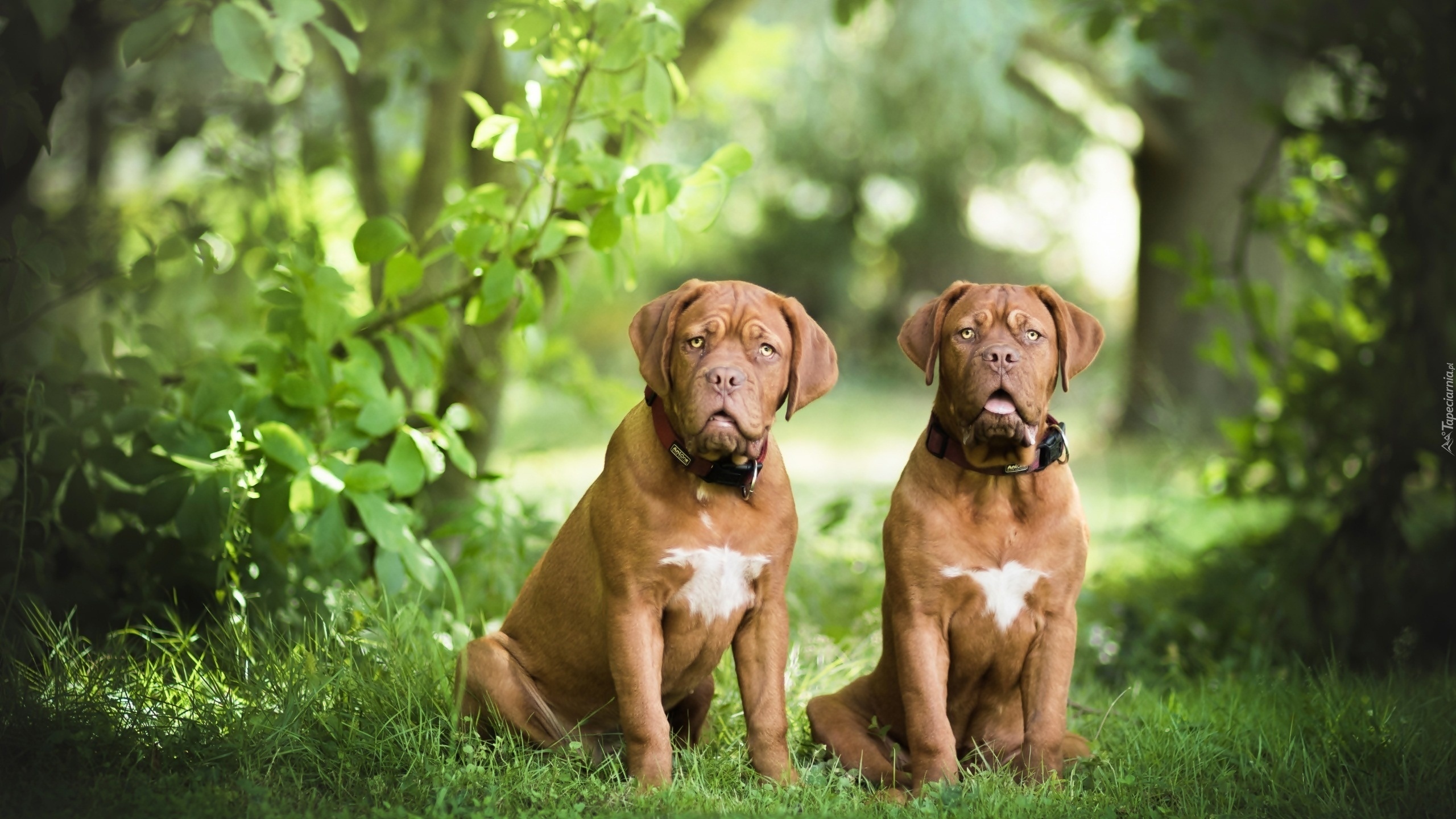Edytor tapety: Dwa dogi de Bordeaux w lesie