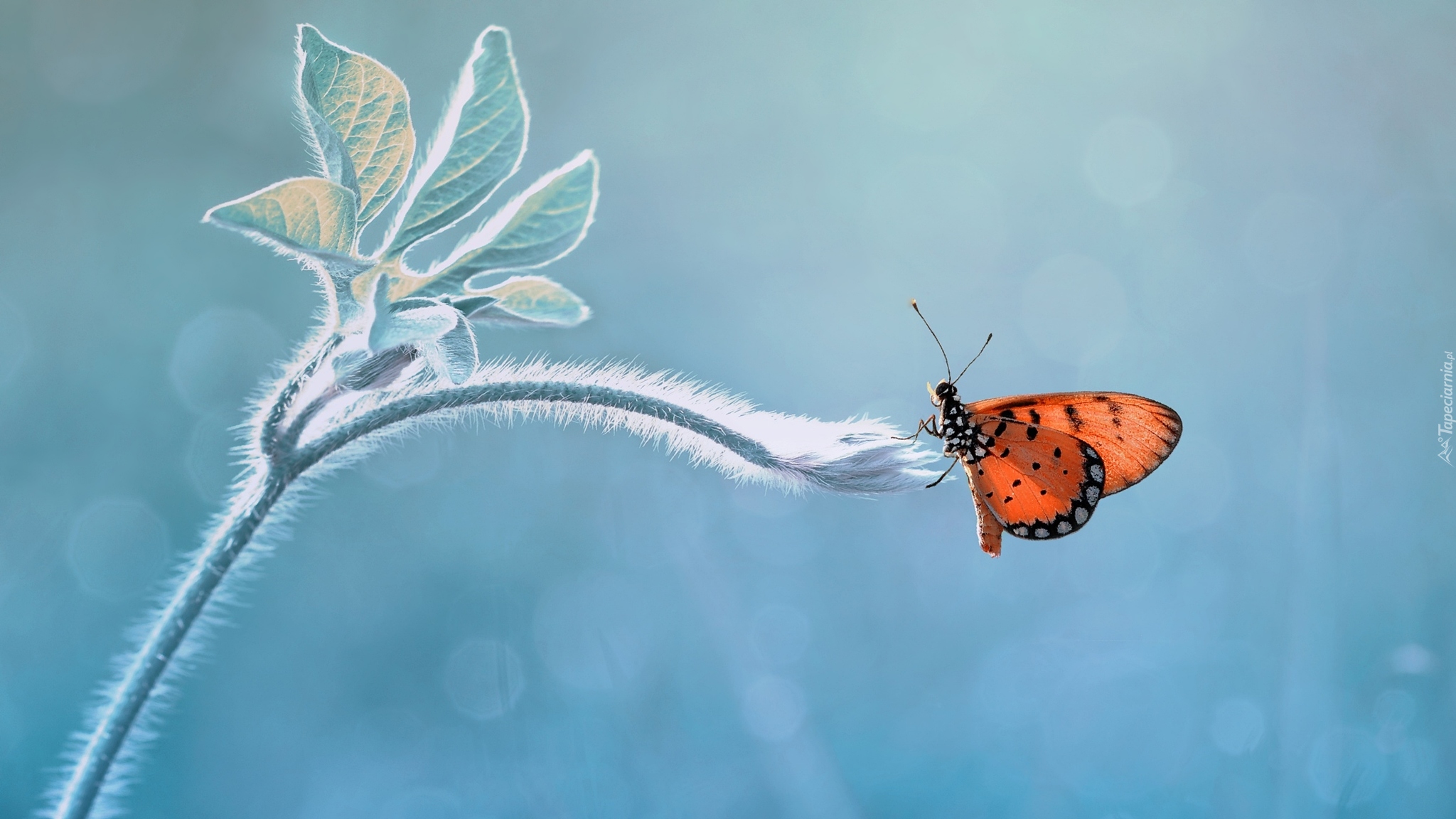 Edytor tapety: Motylek na łodyżce z listkami