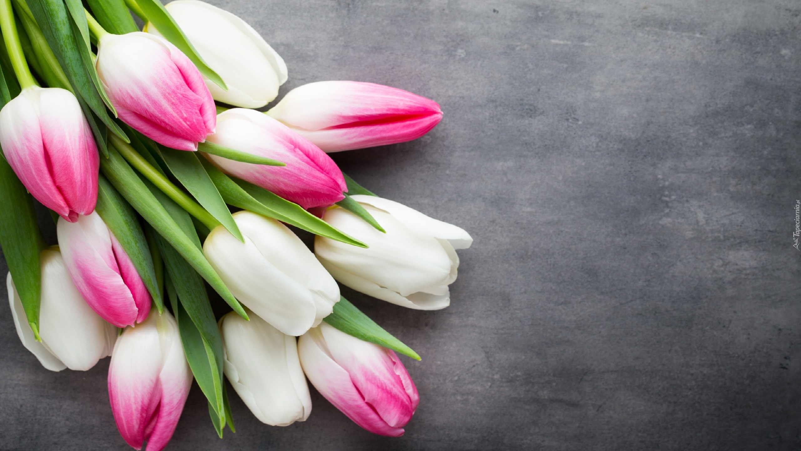 Edytor tapety: Bukiet biało-różowych tulipanów