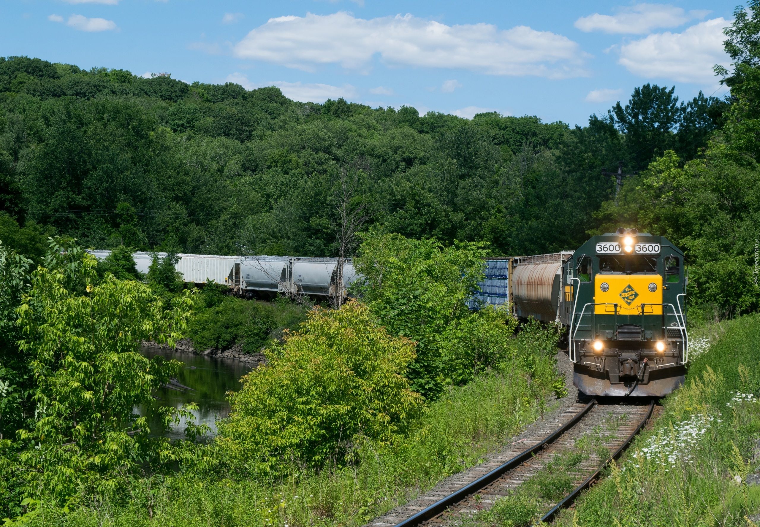 Edytor tapety: Pociąg towarowy przejeżdżający przez las