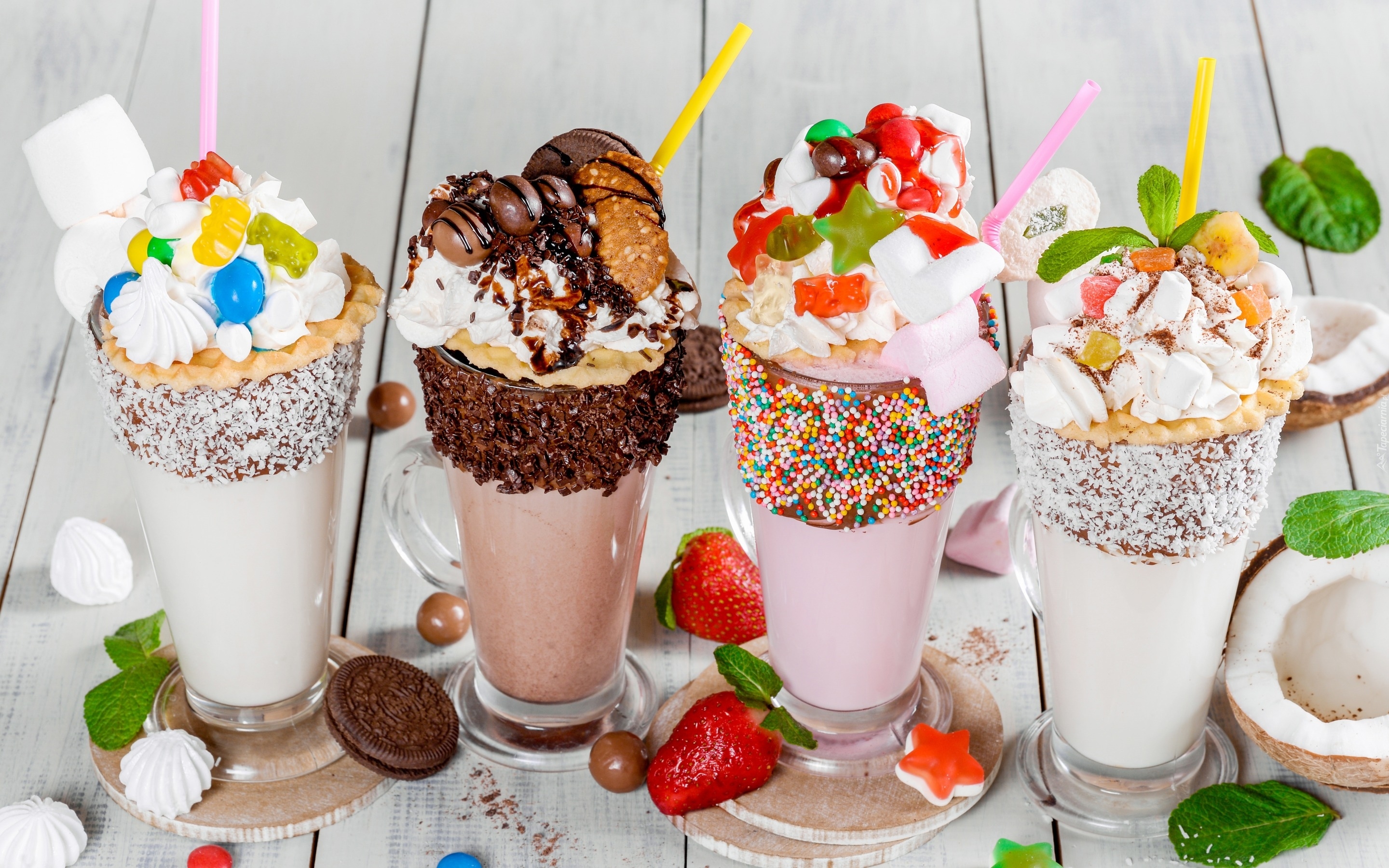 Edytor tapety: Milkshake z bitą śmietaną i owocami