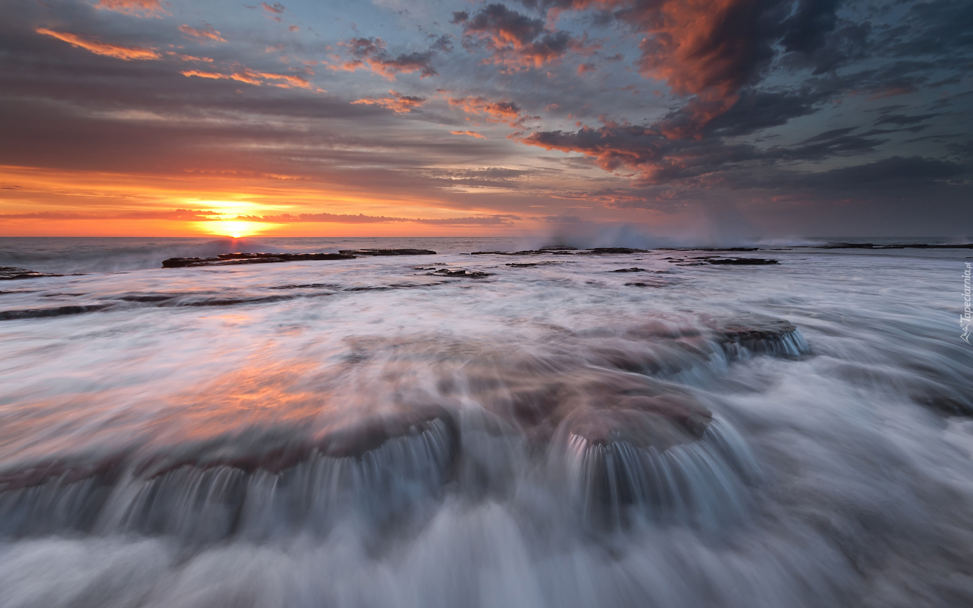 Edytor tapety: Morze w promieniach zachodzącego słońca