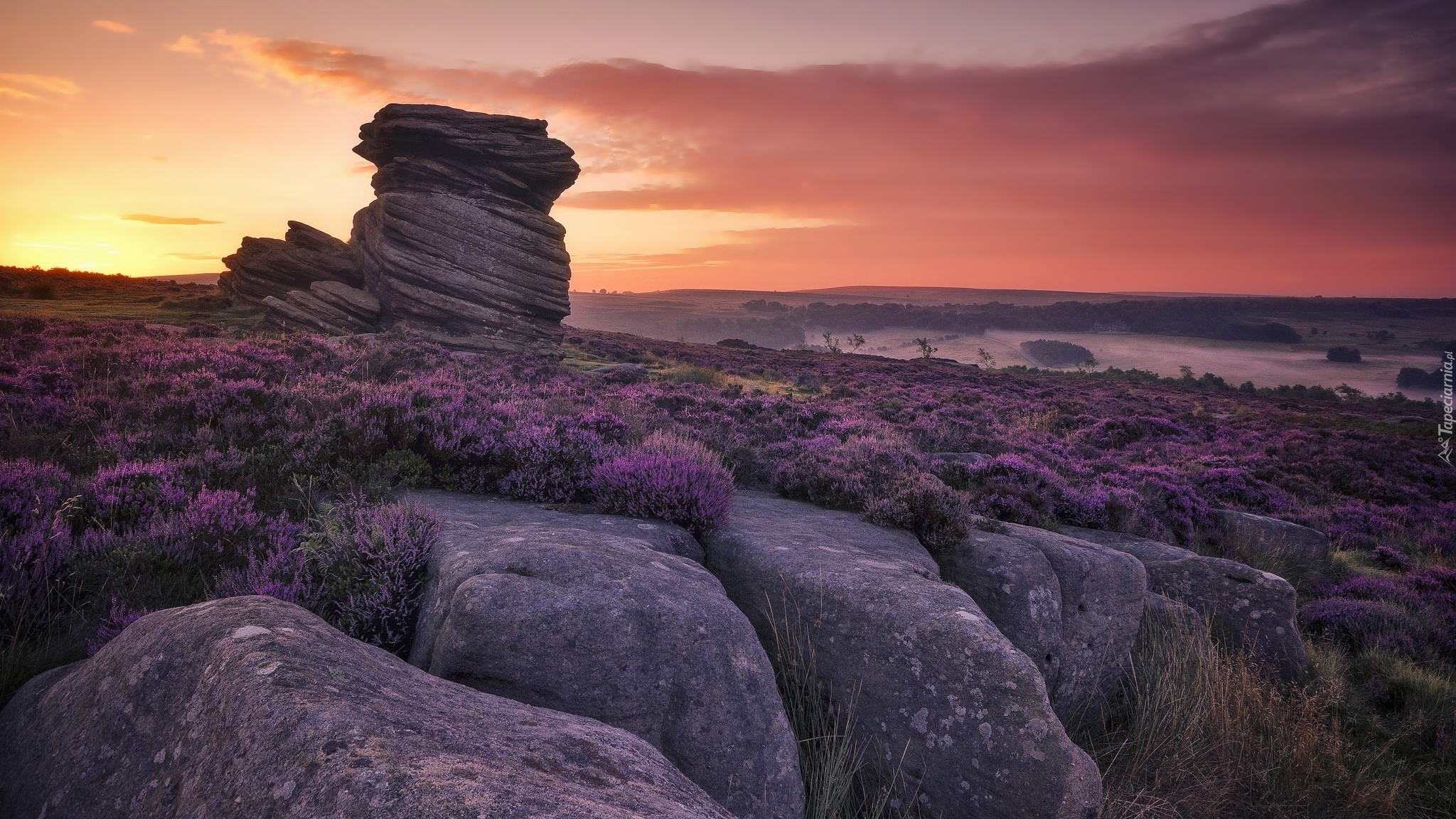 Edytor tapety: Wrzosy porastające skały i kamienie