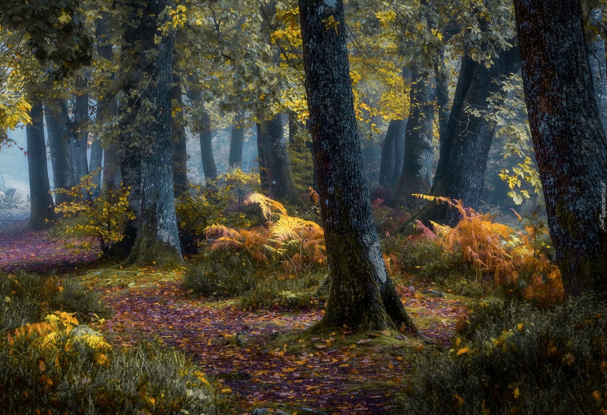 Edytor tapety: Kolorowe jesienne liście na leśnej drodze