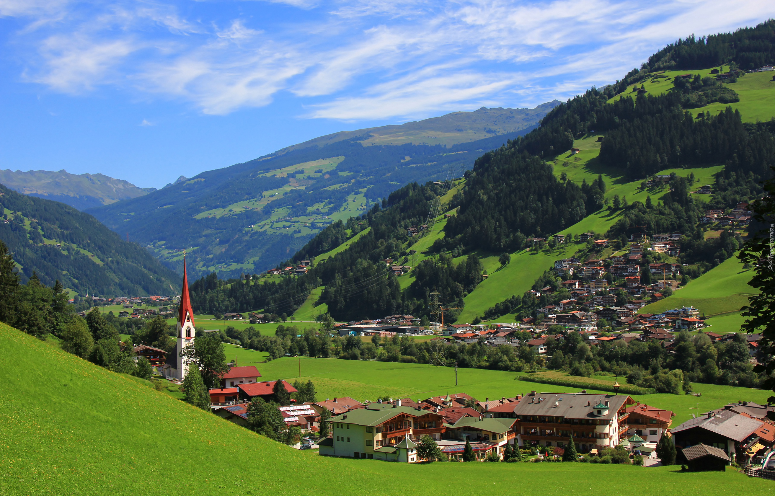 Edytor tapety: Austriackie miasteczko Mayrhofen u podnóża gór