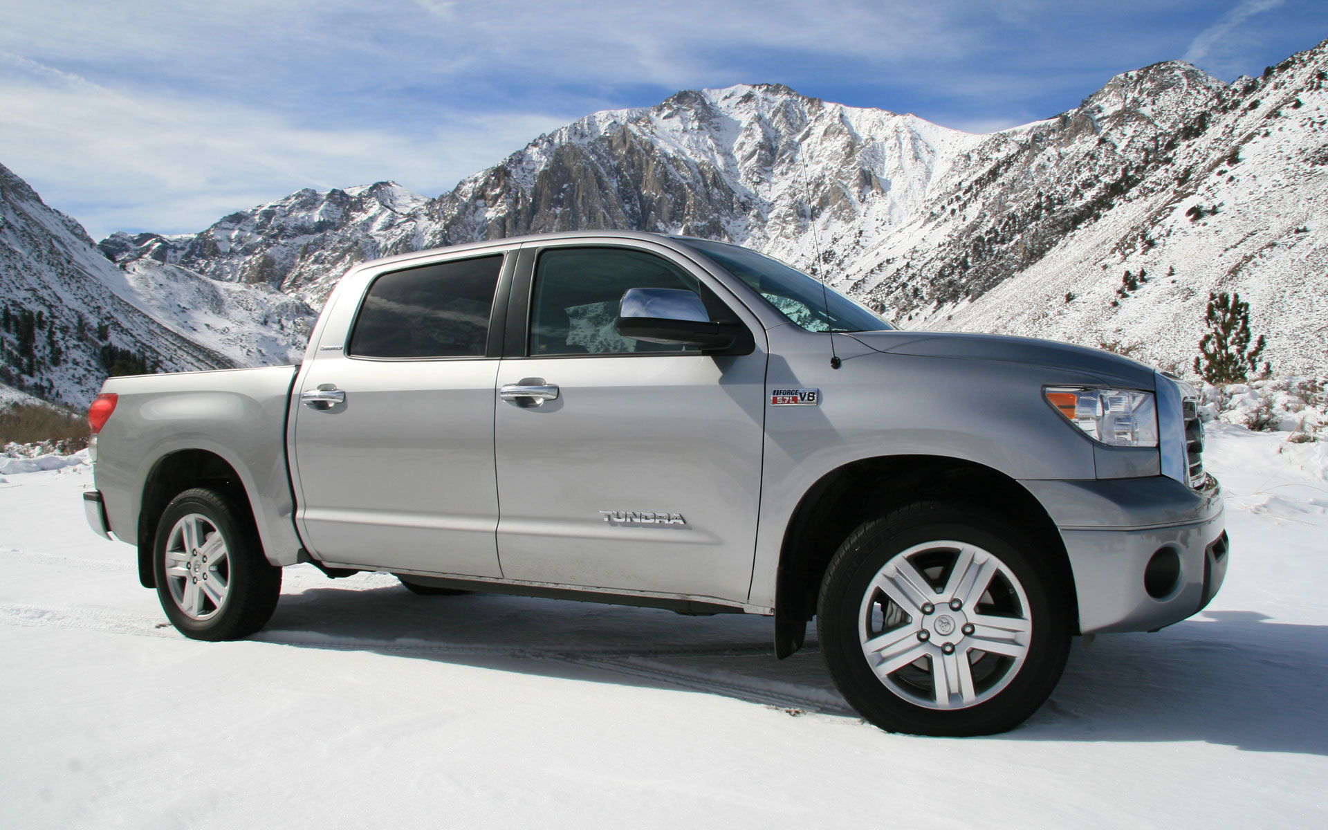 Edytor tapety: Samochód Toyota Tundra na tle zaśnieżonych gór