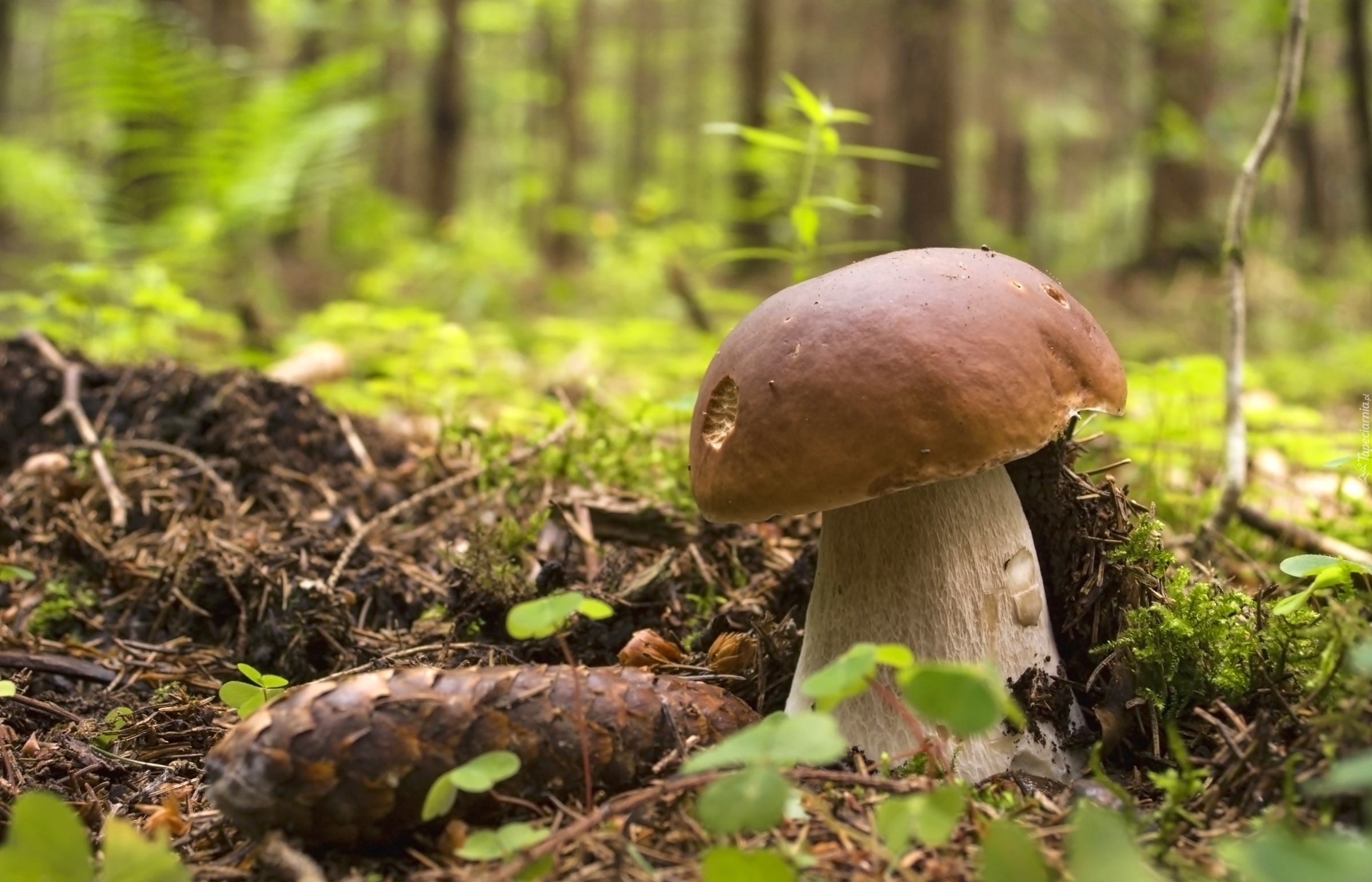 Edytor tapety: Okazały borowik wychylił się spod mchu