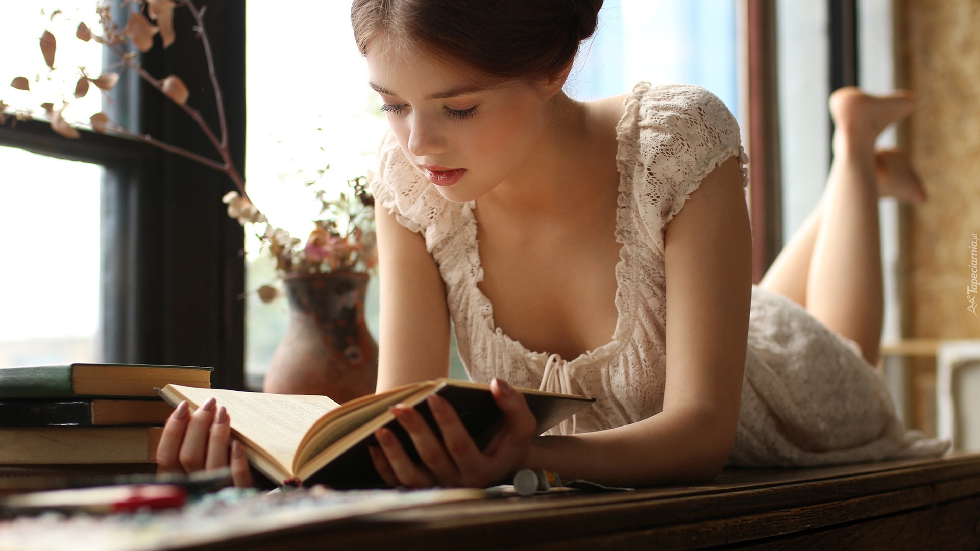 Edytor tapety: Dziewczyna relaksuje się czytając książkę