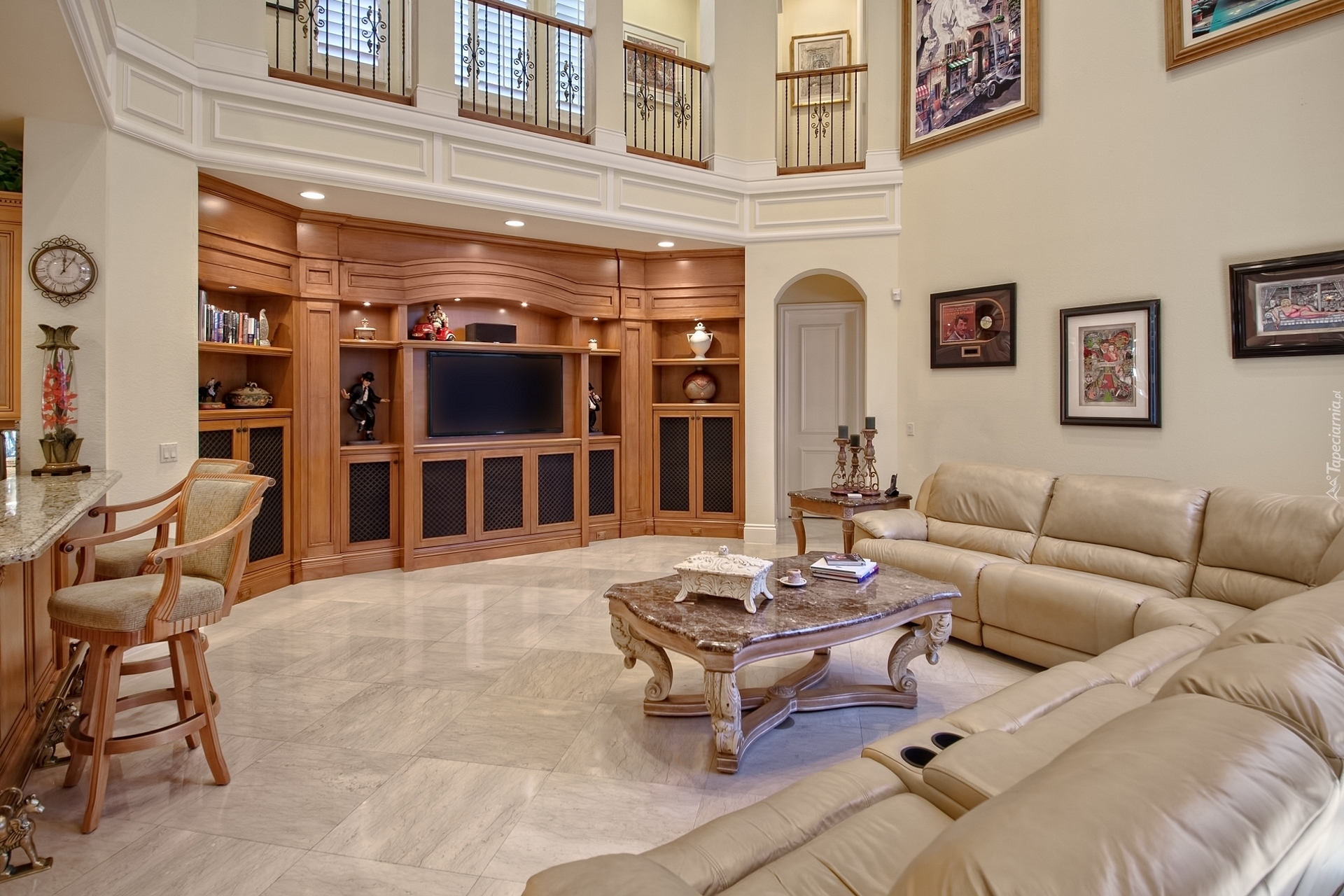 Edytor tapety: Pokój wypoczynkowy z kanapami i obrazami na ścianach