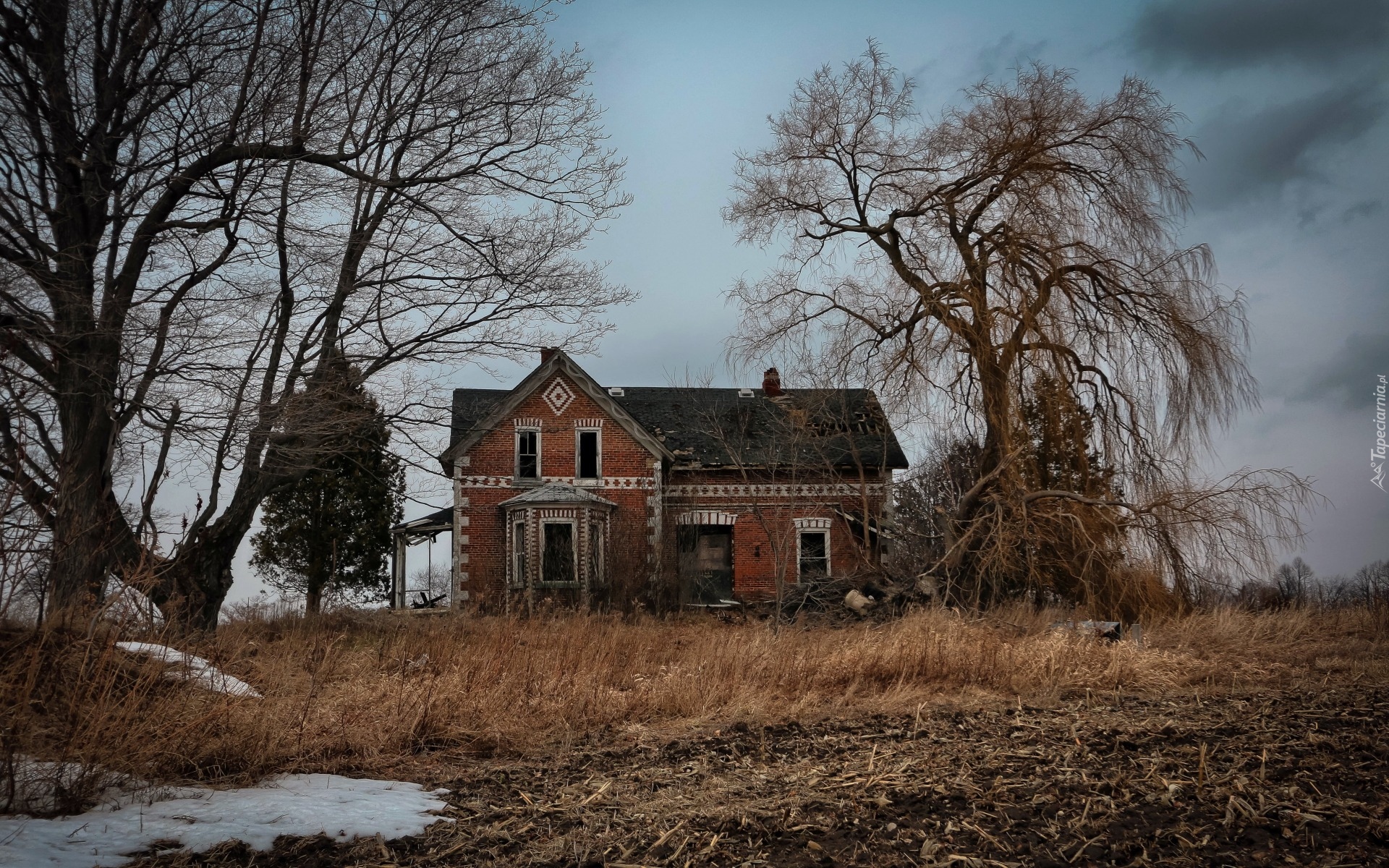 Edytor tapety: Stary opuszczony dom otoczony drzewami