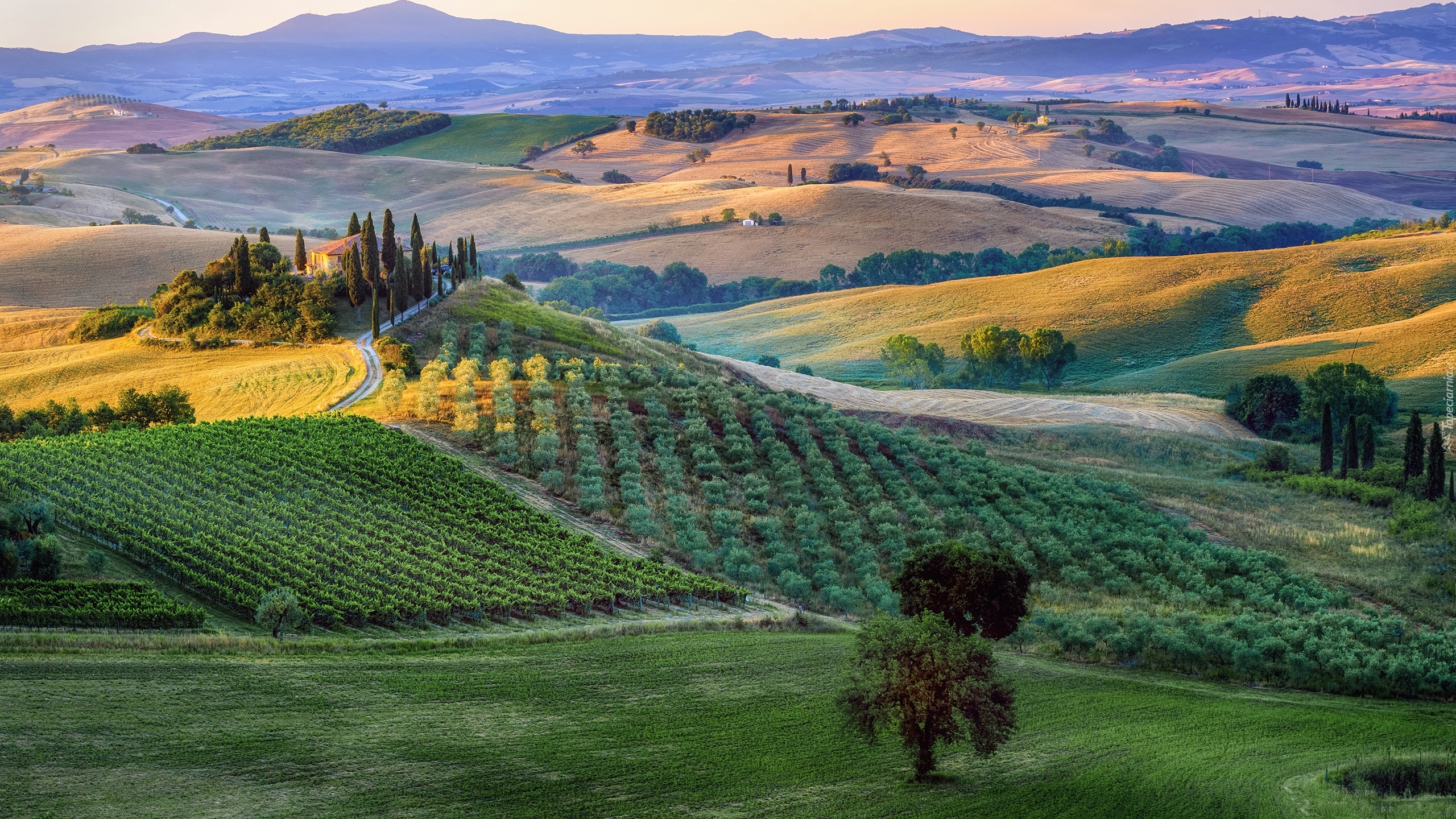 Edytor tapety: Pola i plantacje na wzgórzach Toskanii