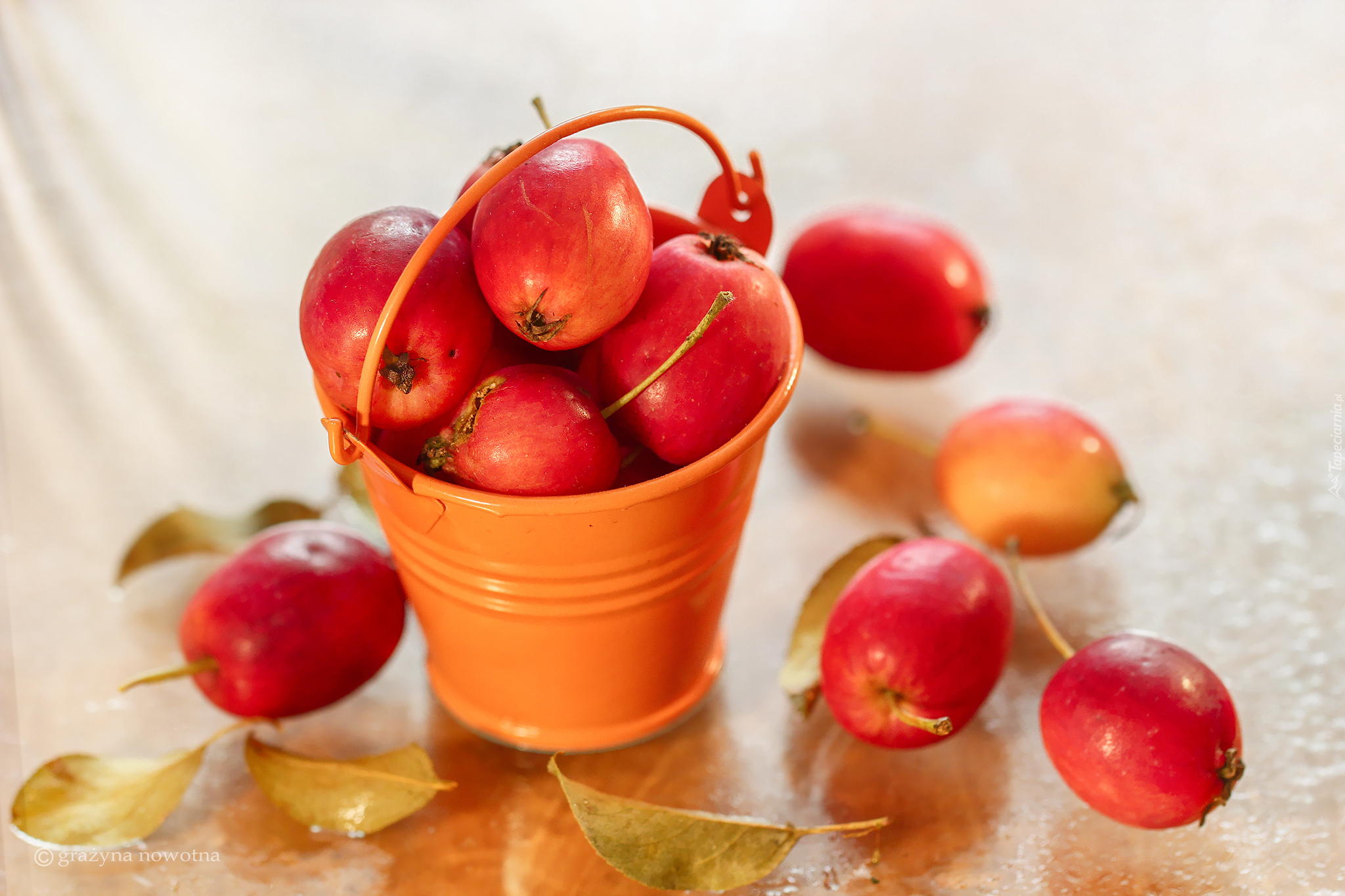 Edytor tapety: Rajskie jabłuszka w wiaderku