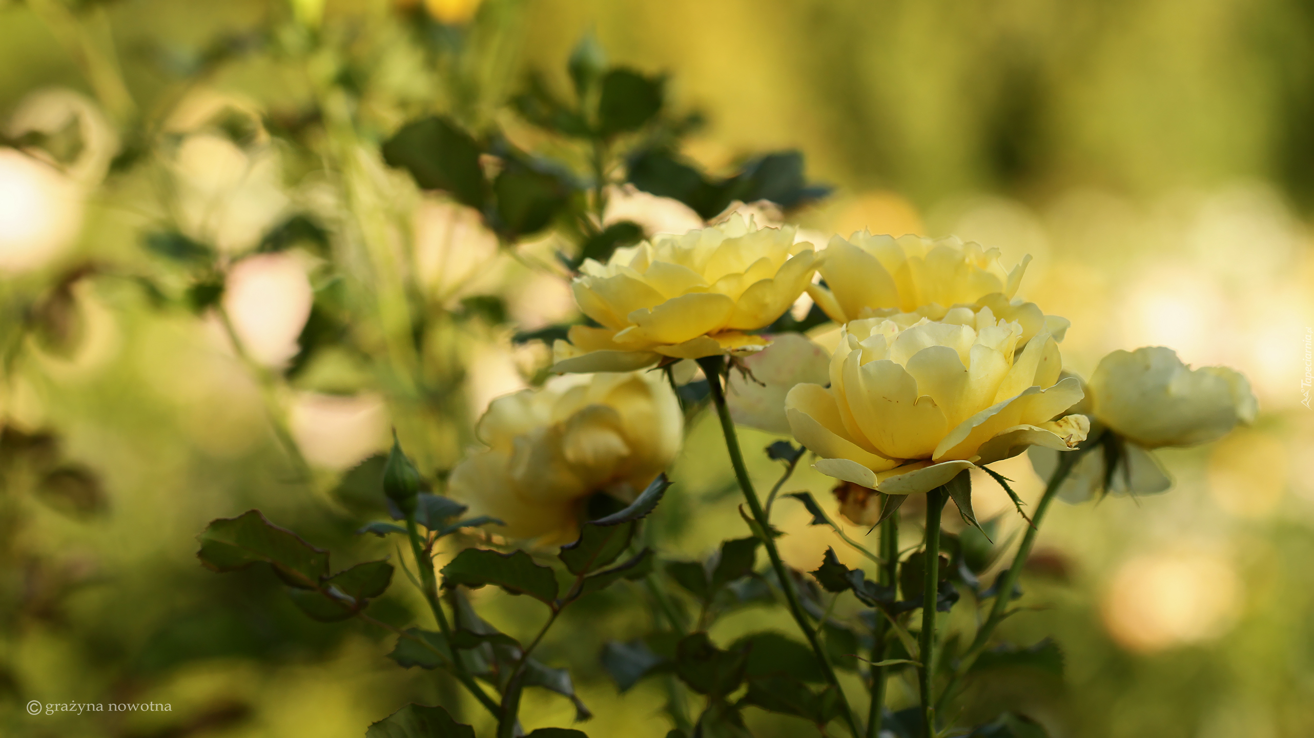 Edytor tapety: Żółte róże na łodyżkach