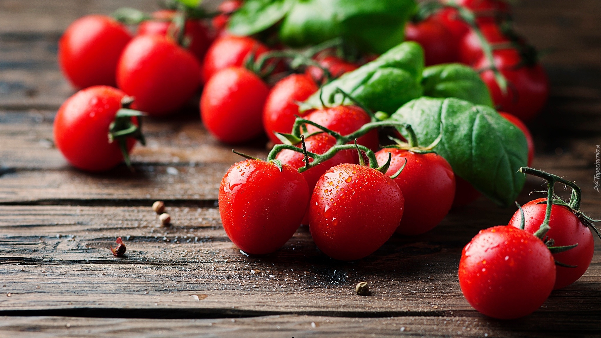 Edytor tapety: Pomidorki koktajlowe na deskach
