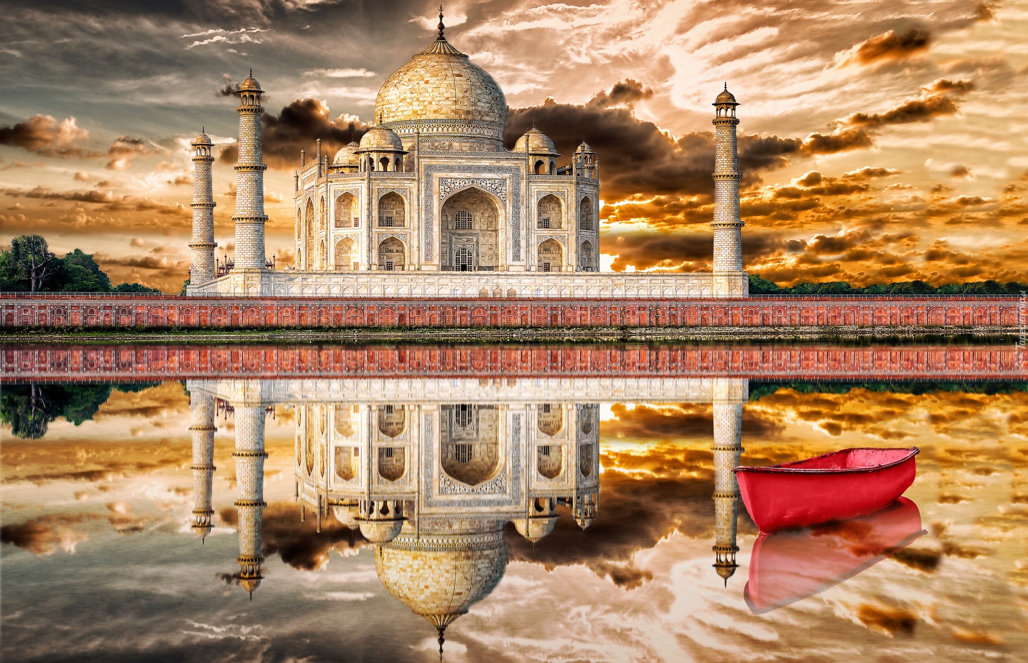 Edytor tapety: Indyjskie mauzoleum Tadź Mahal nad rzeką Jamuna
