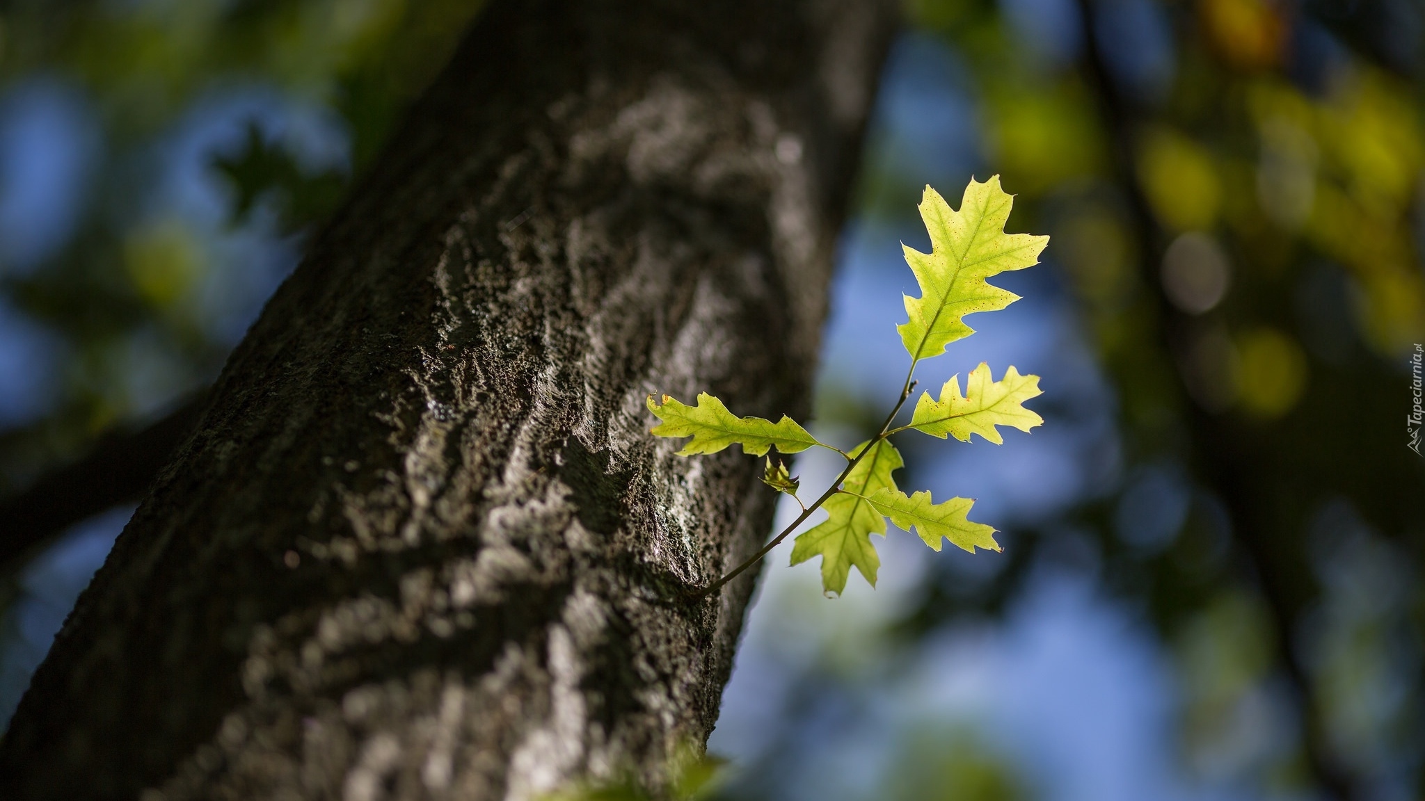 Edytor tapety: Drzewo dębu w rozmyciu