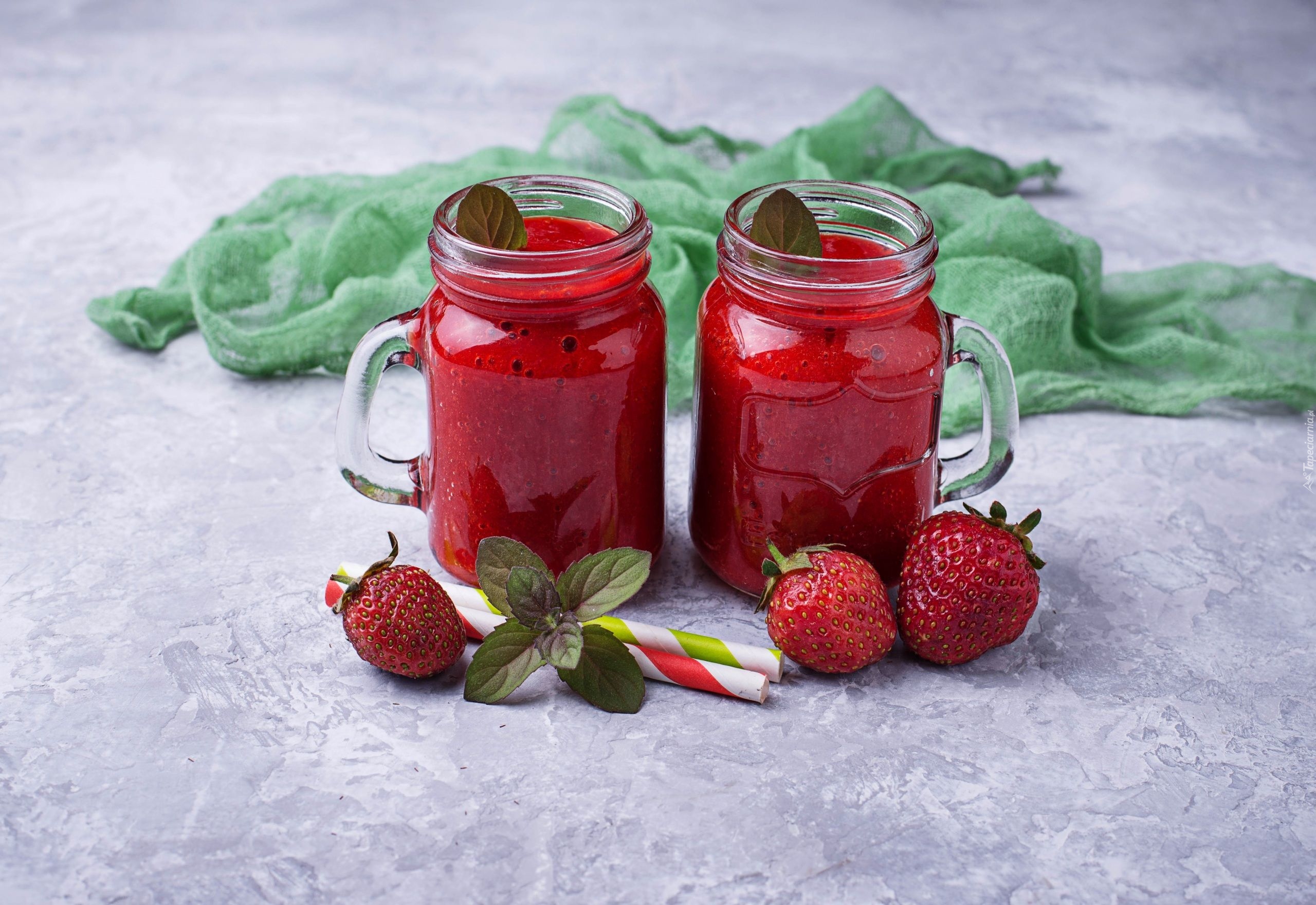 Edytor tapety: Sok truskawkowy w szklanych słoikach