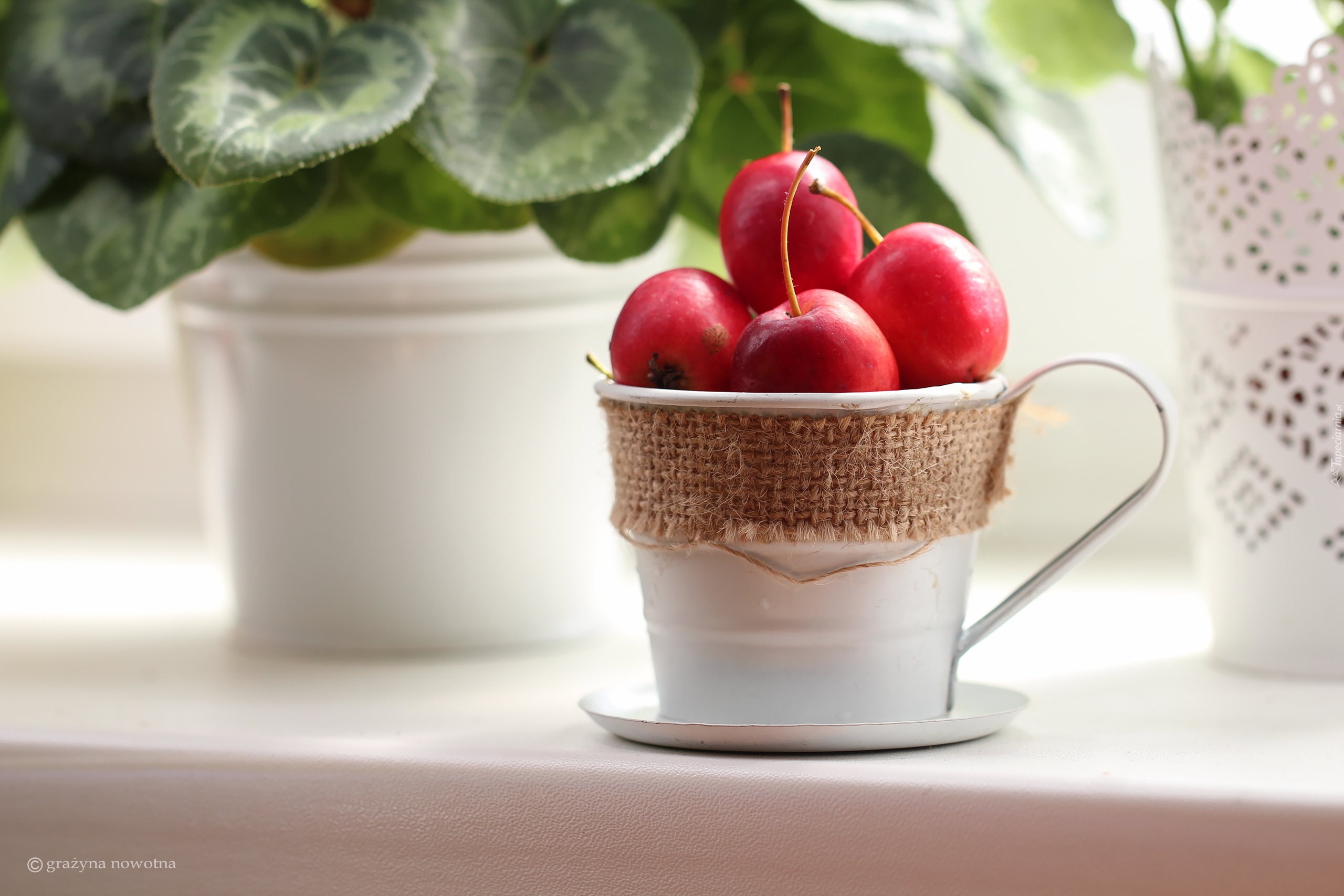 Edytor tapety: Czerwone jabłuszka w filiżance
