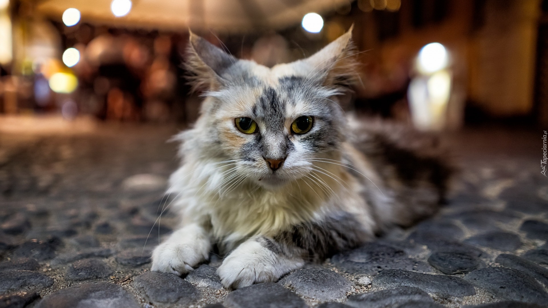 Edytor tapety: Kotek odpoczywa na kamieniach