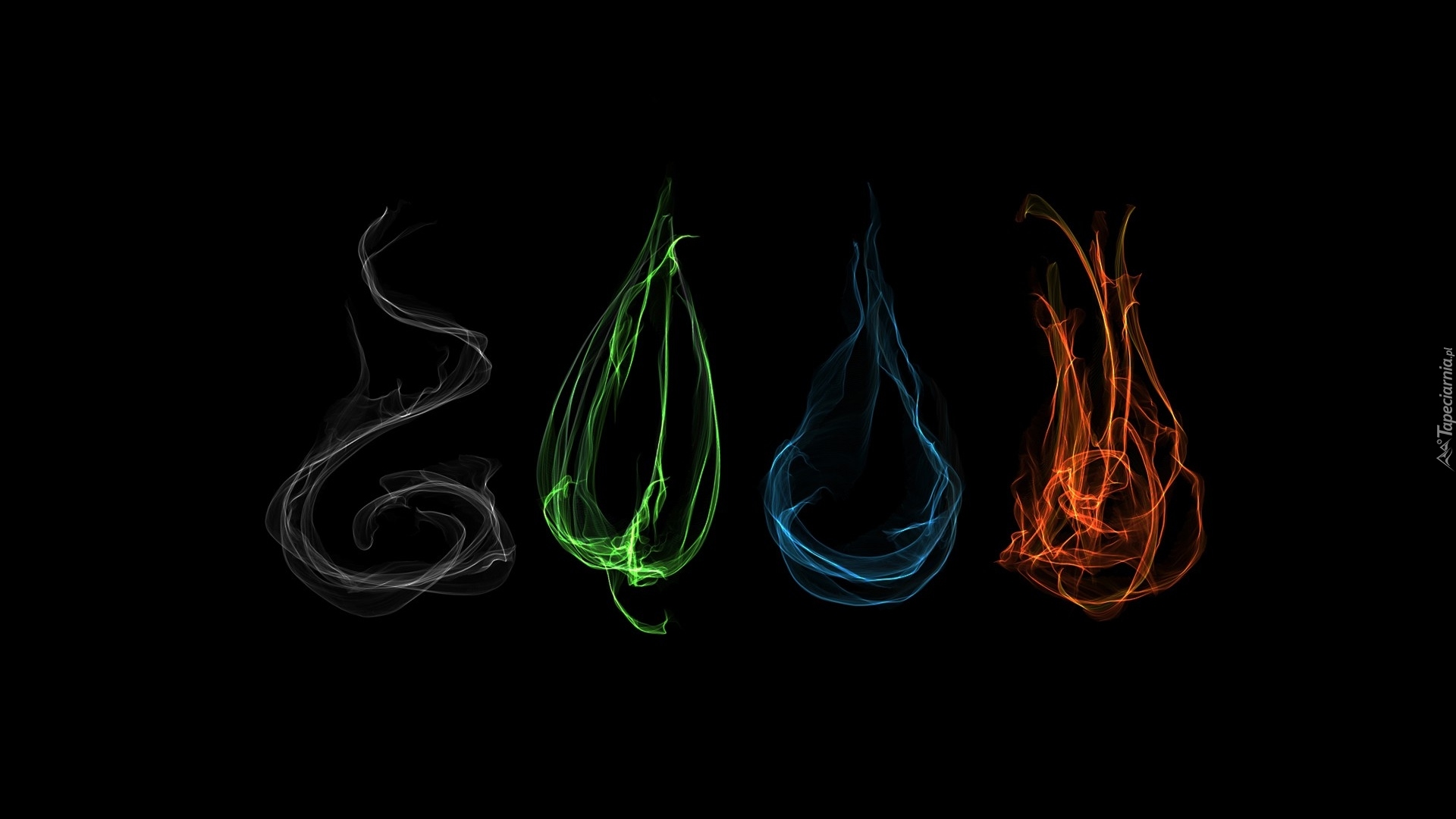 Edytor tapety: Cztery żywioły w grafice 2D na czarnym tle