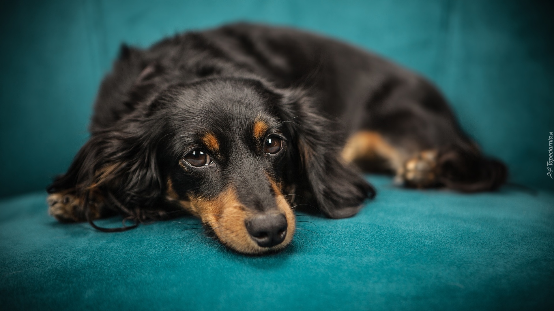 Edytor tapety: Jamnik długowłosy czarny podpalany
