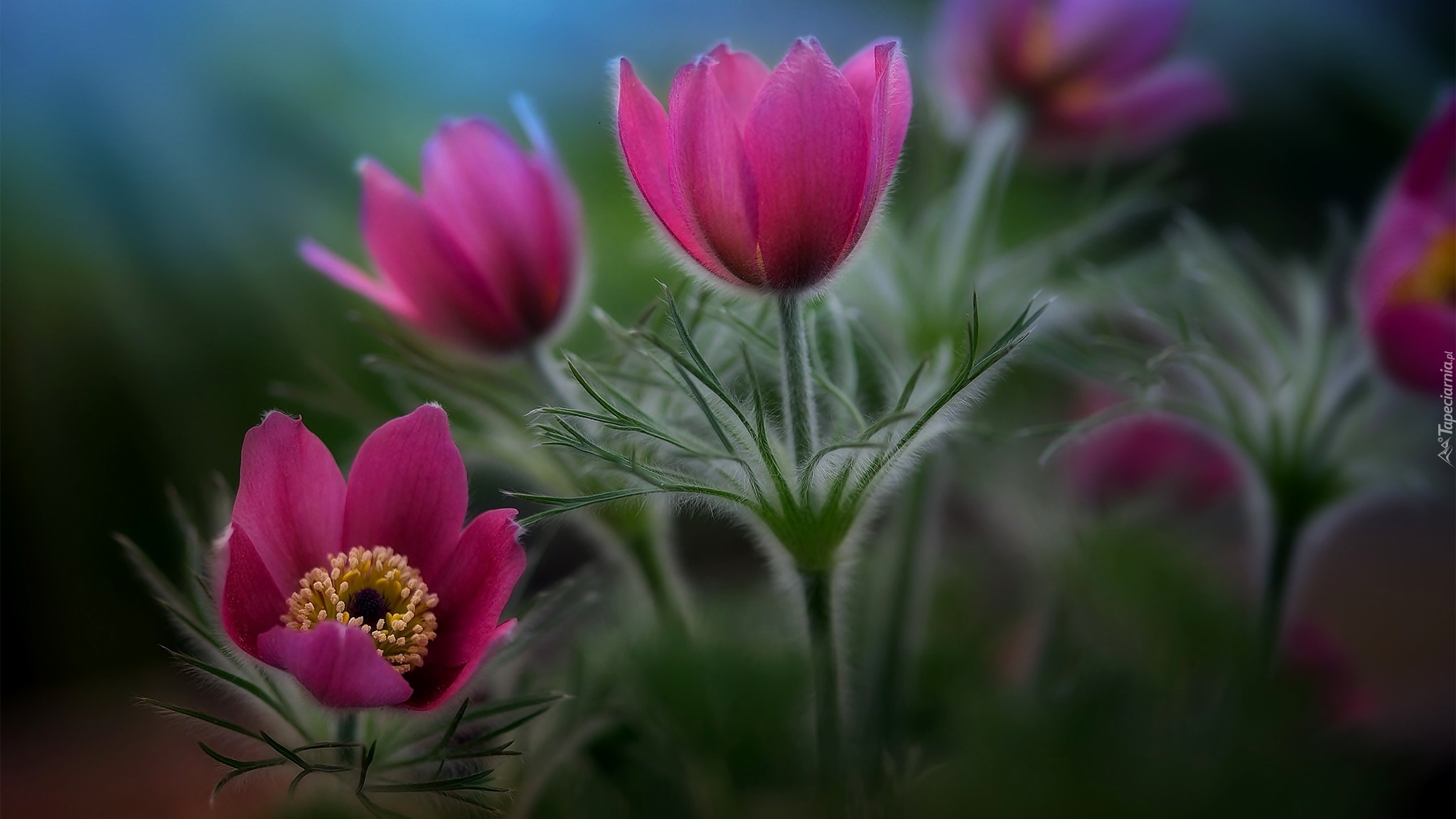 Edytor tapety: Purpurowe sasanki w rozmyciu