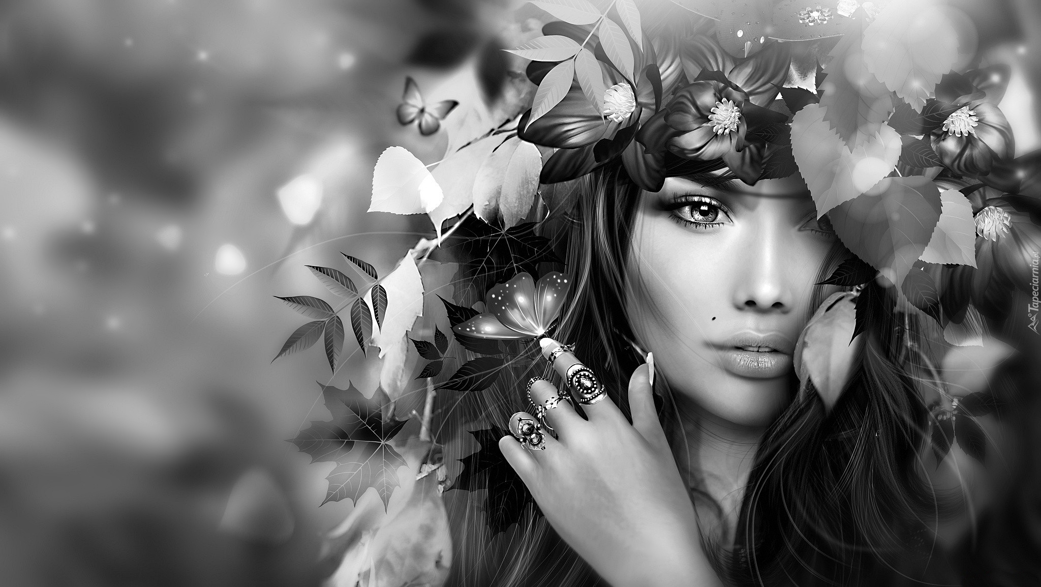 Edytor tapety: Portret dziewczyny z kwiatami we włosach