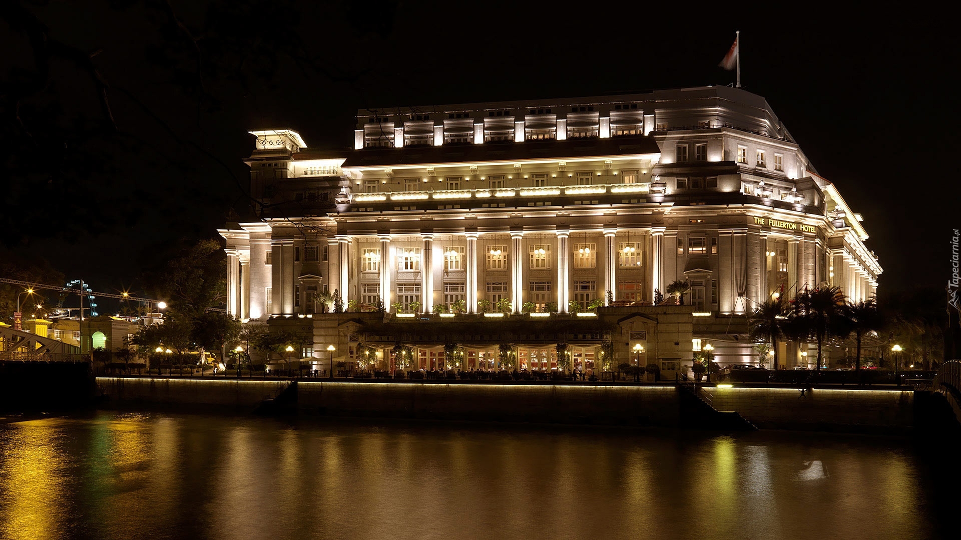 Edytor tapety: Oświetlony The Fullerton Hotel w Singapurze