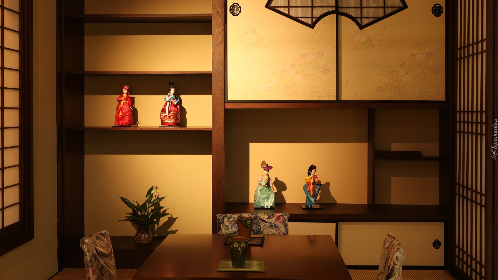 Edytor tapety: Chińskie figurki ustawione na półkach