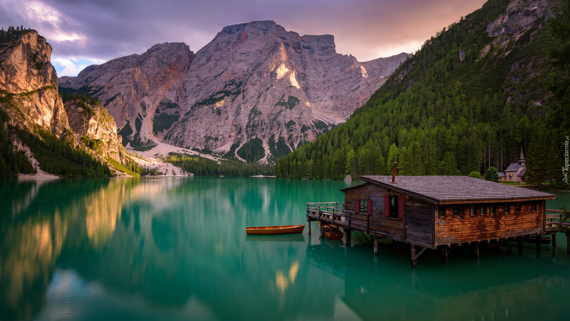 Edytor tapety: Dom na jeziorze Pragser Wildsee we Włoszech
