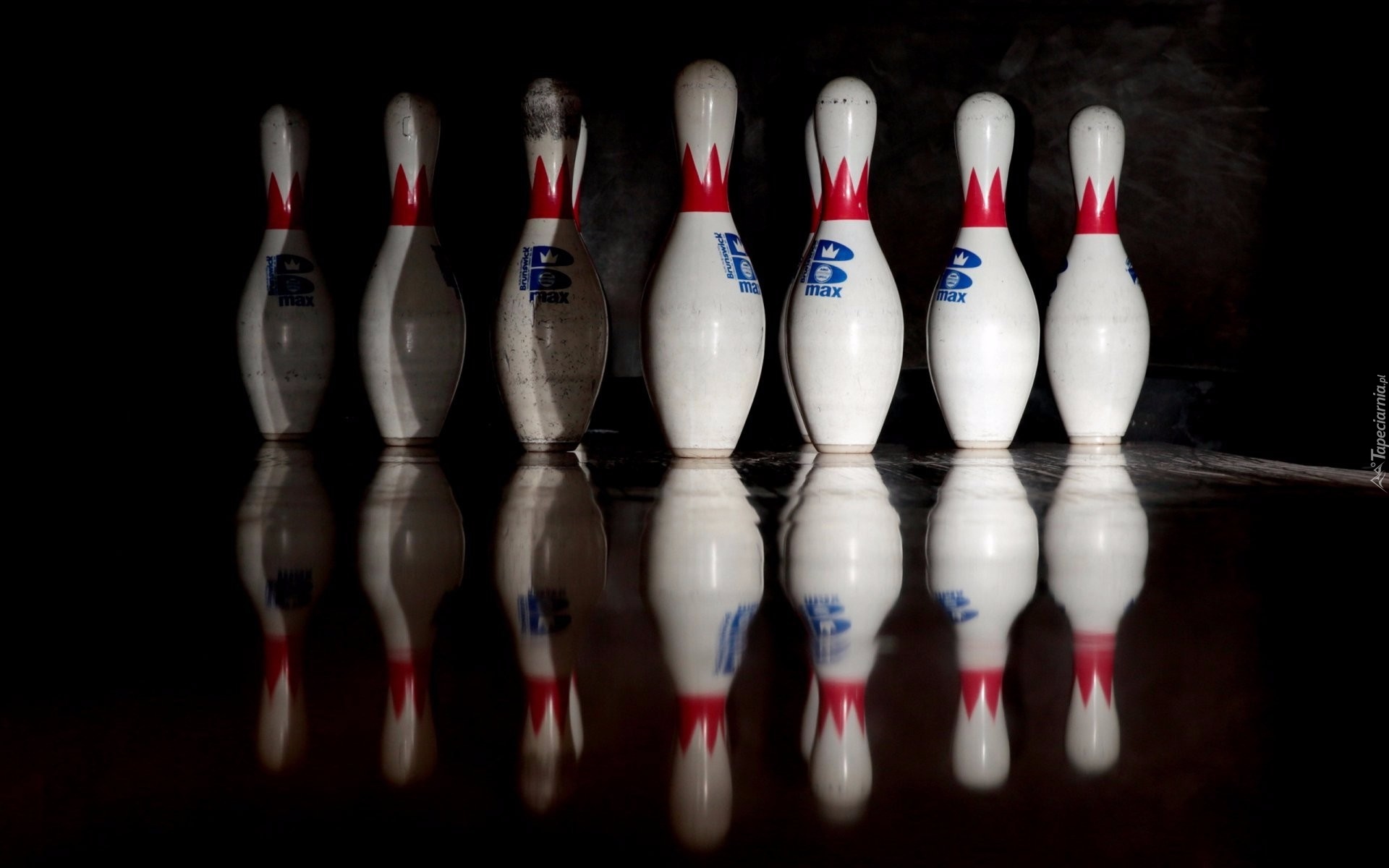 Edytor tapety: Kręgle i ich odbicie na czarnym tle
