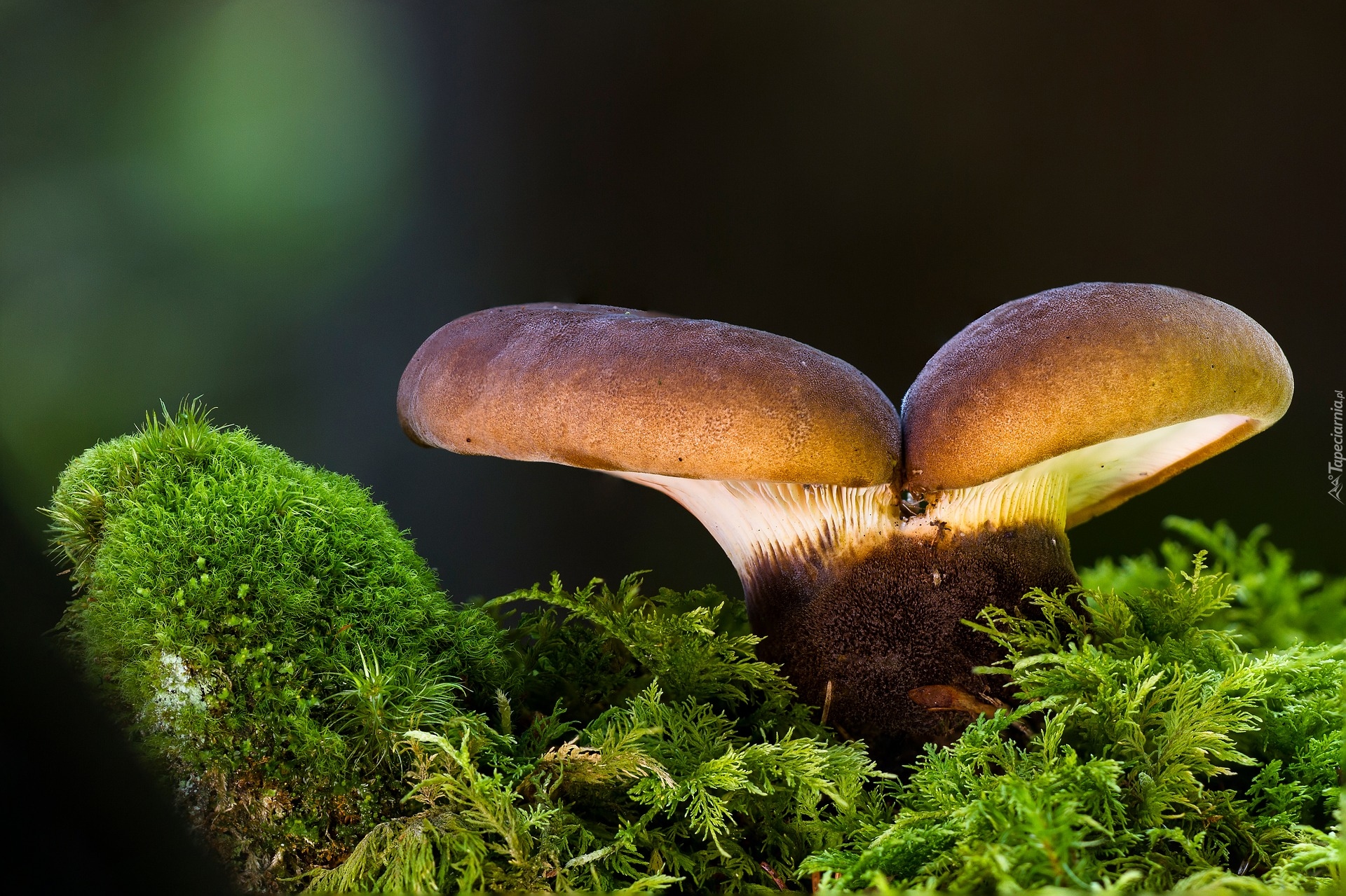 Edytor tapety: Dwa zrośnięte grzyby w mchu