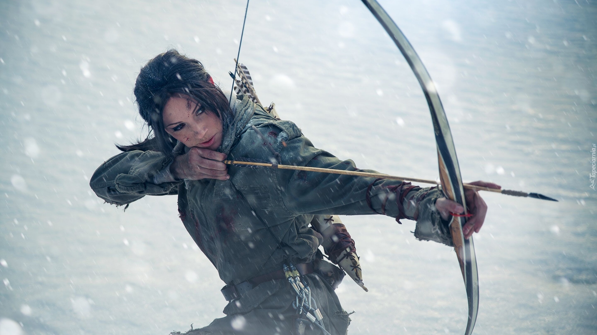 Edytor tapety: Kobieta z łukiem jako Lara Croft