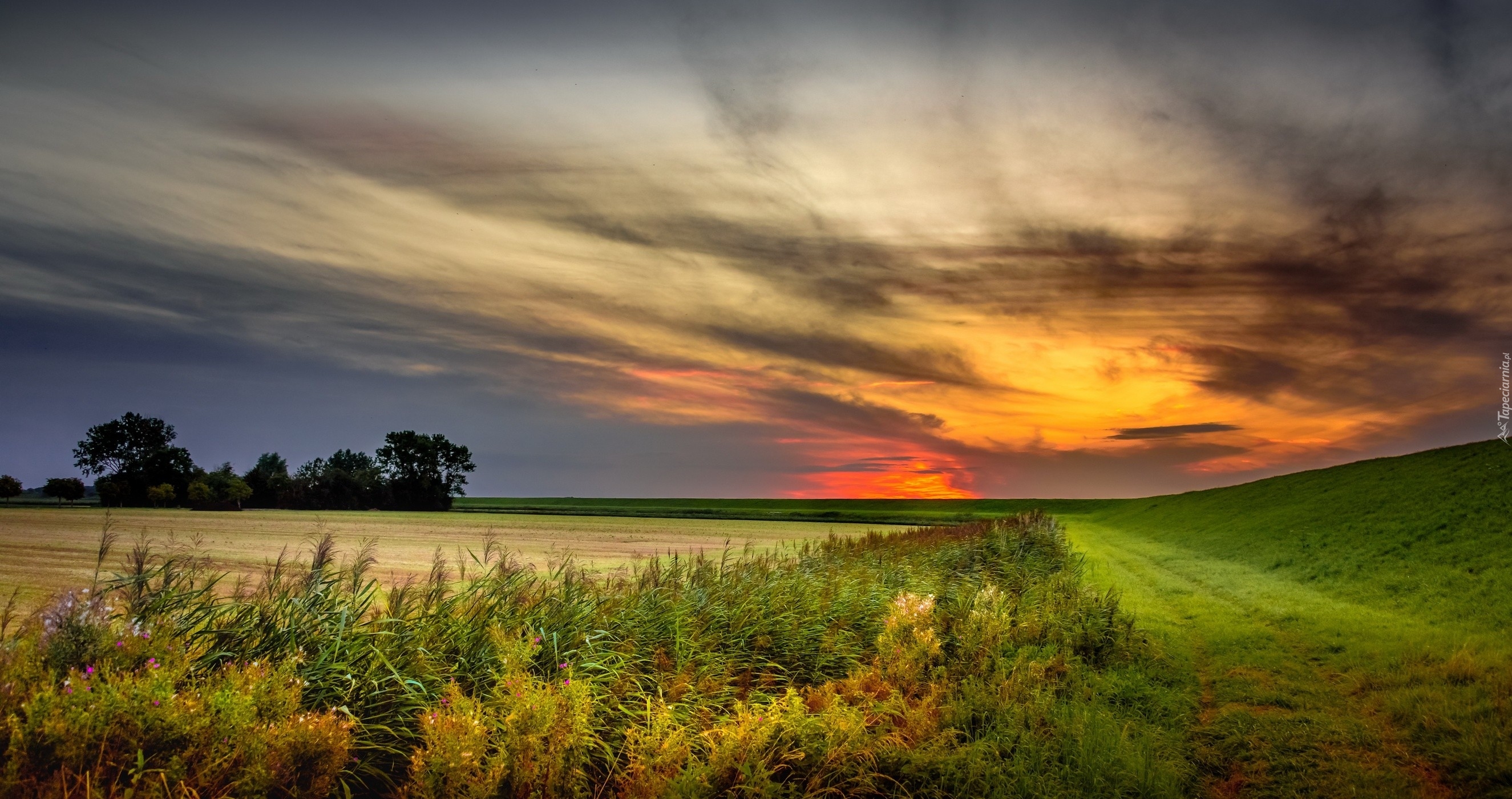 Edytor tapety: Chmury nad polem w zachodzącym słońcu