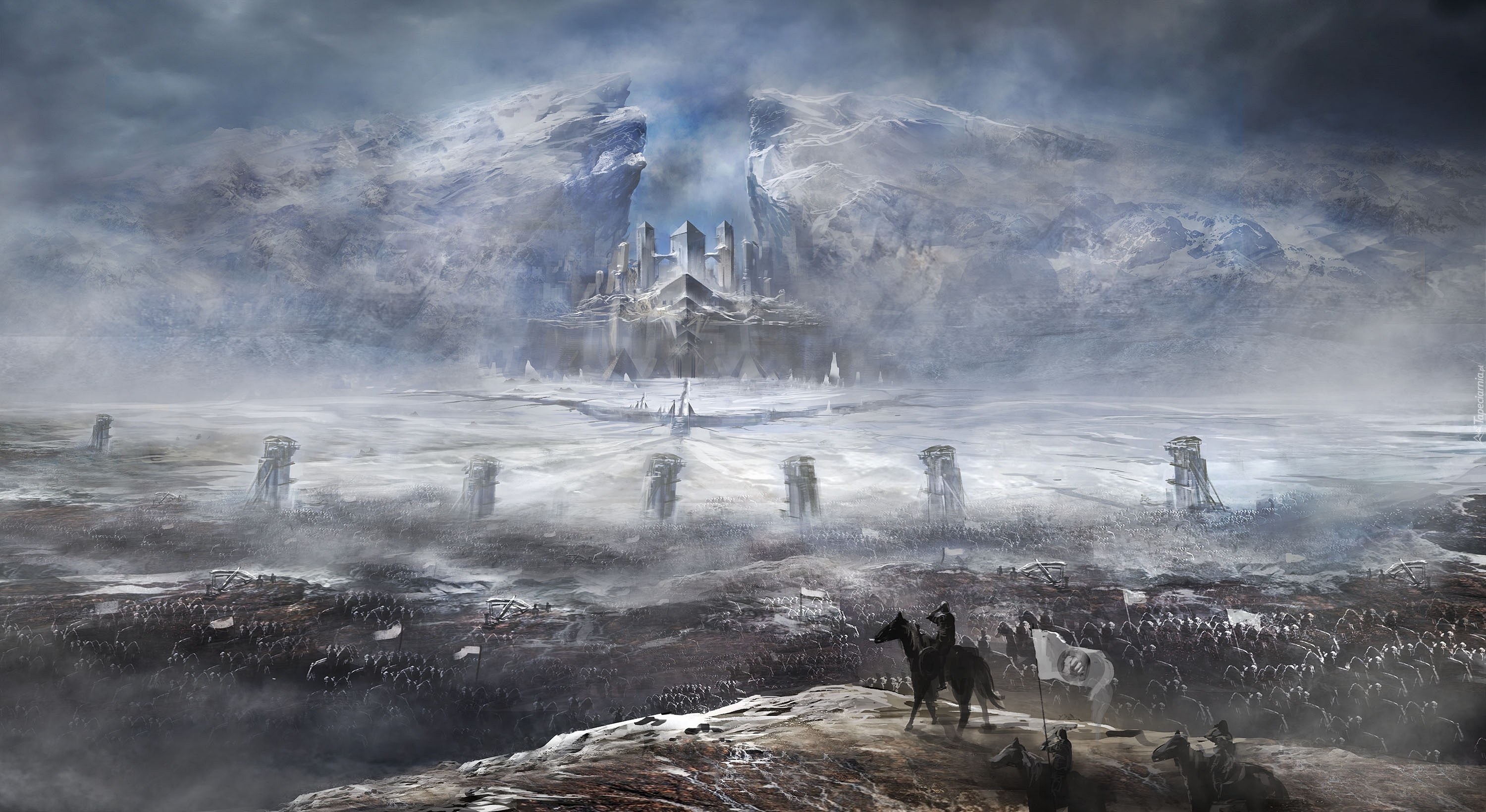 Edytor tapety: Oddział żołnierzy pod zamkiem w grafice fantasy
