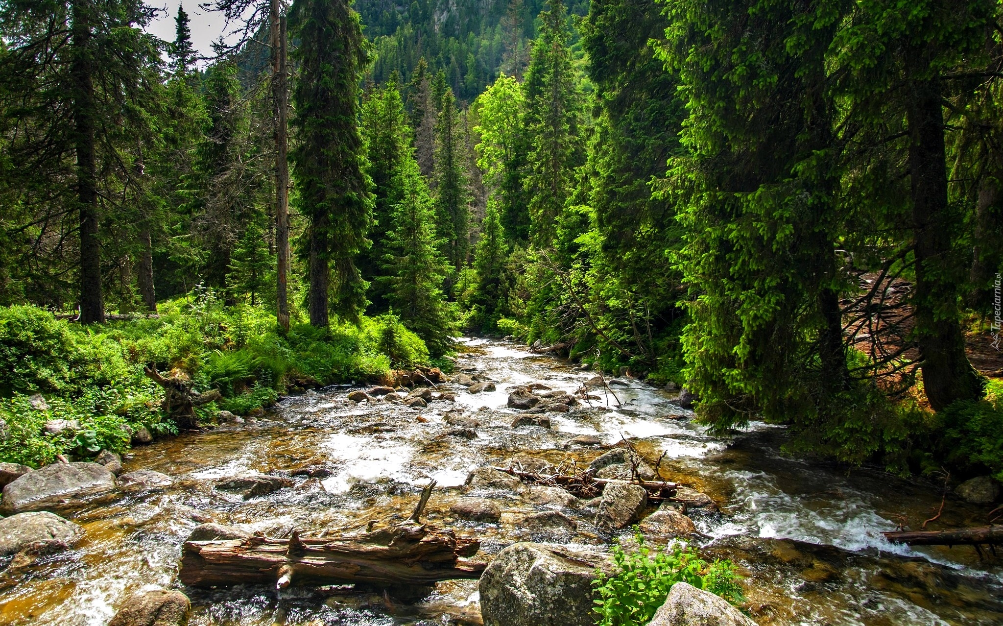 Edytor tapety: Konar w kamienistej rzece płynącej przez las