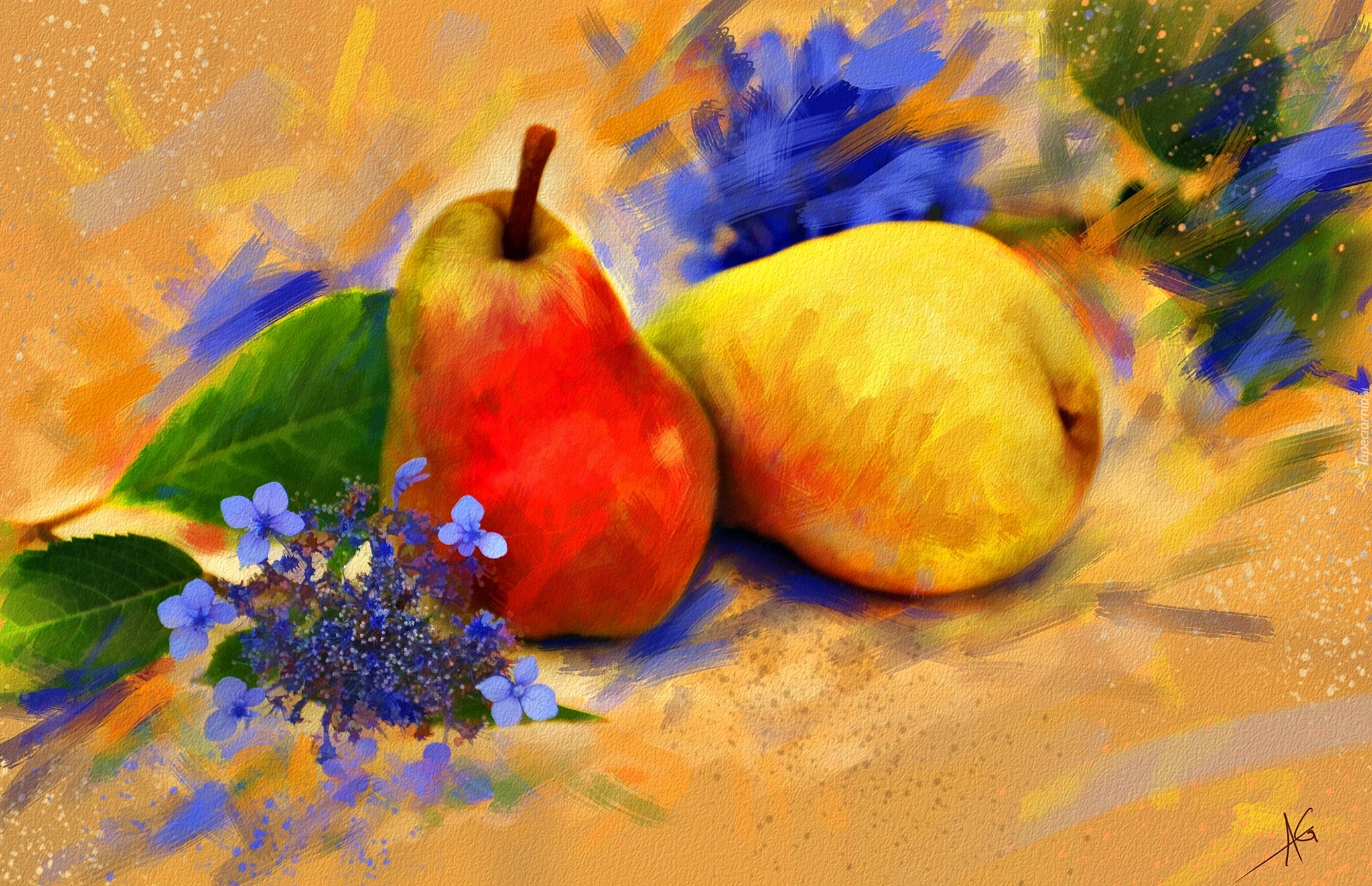 Edytor tapety: Akwarela Alberto Guilléna z gruszkami i hortensją