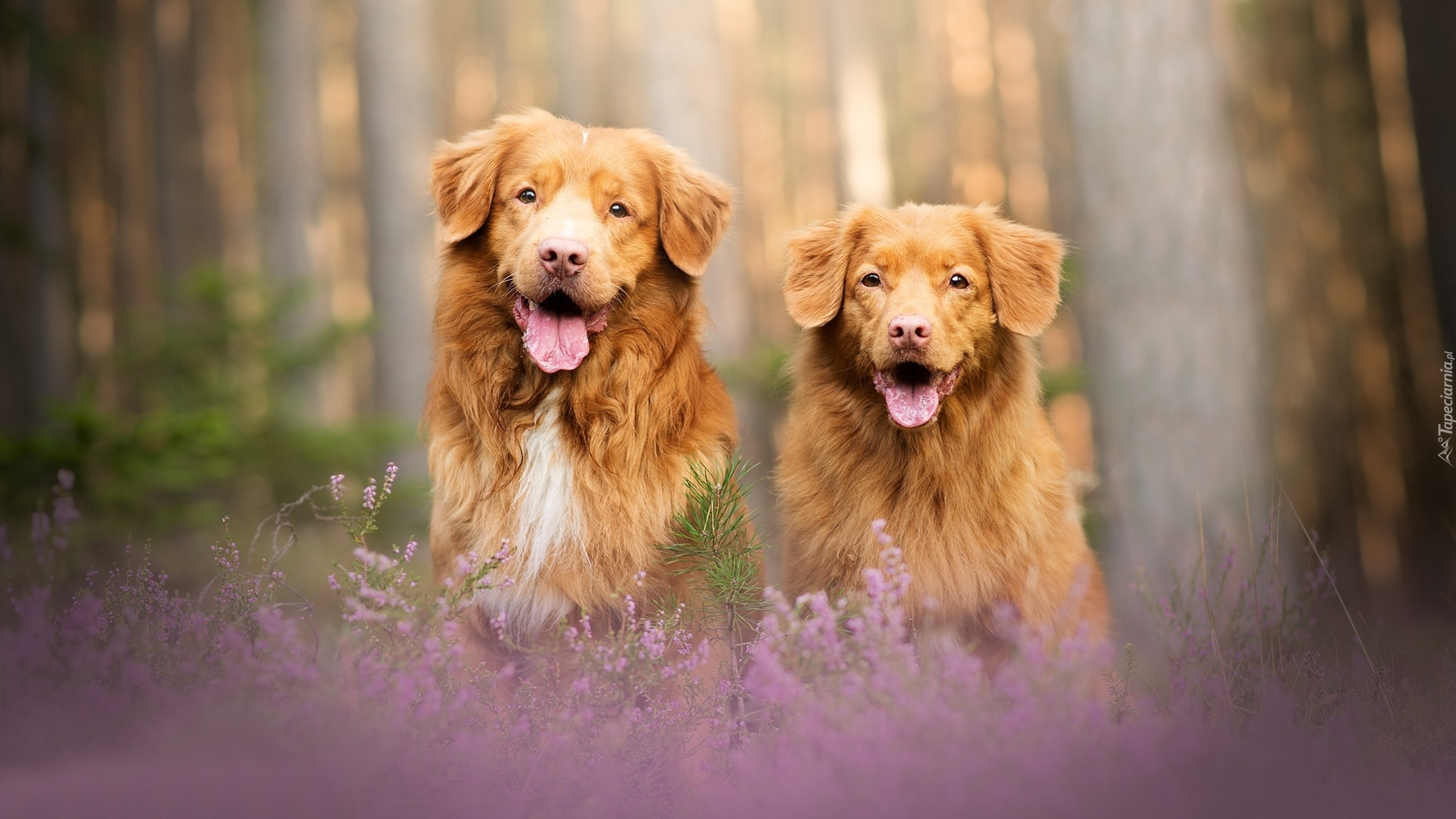 Edytor tapety: Dwa retrievery z Nowej Szkocji na wrzosowej polanie